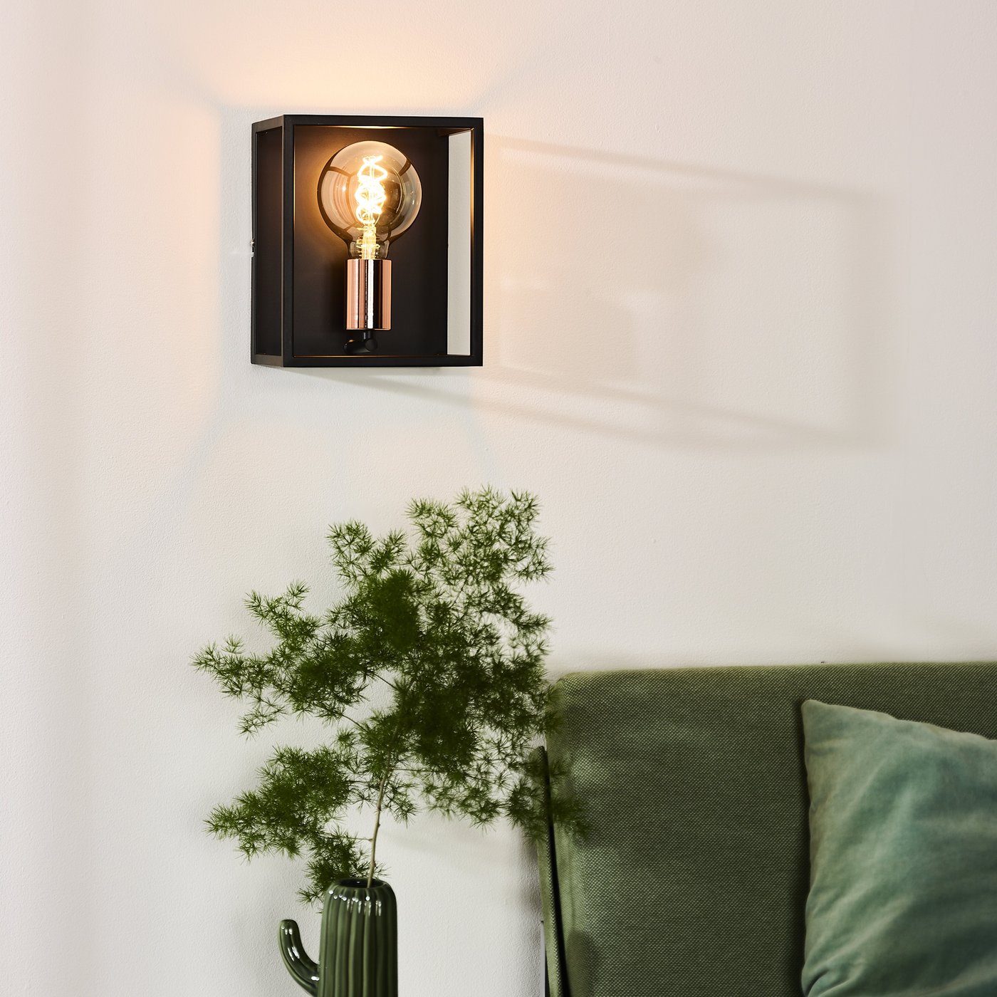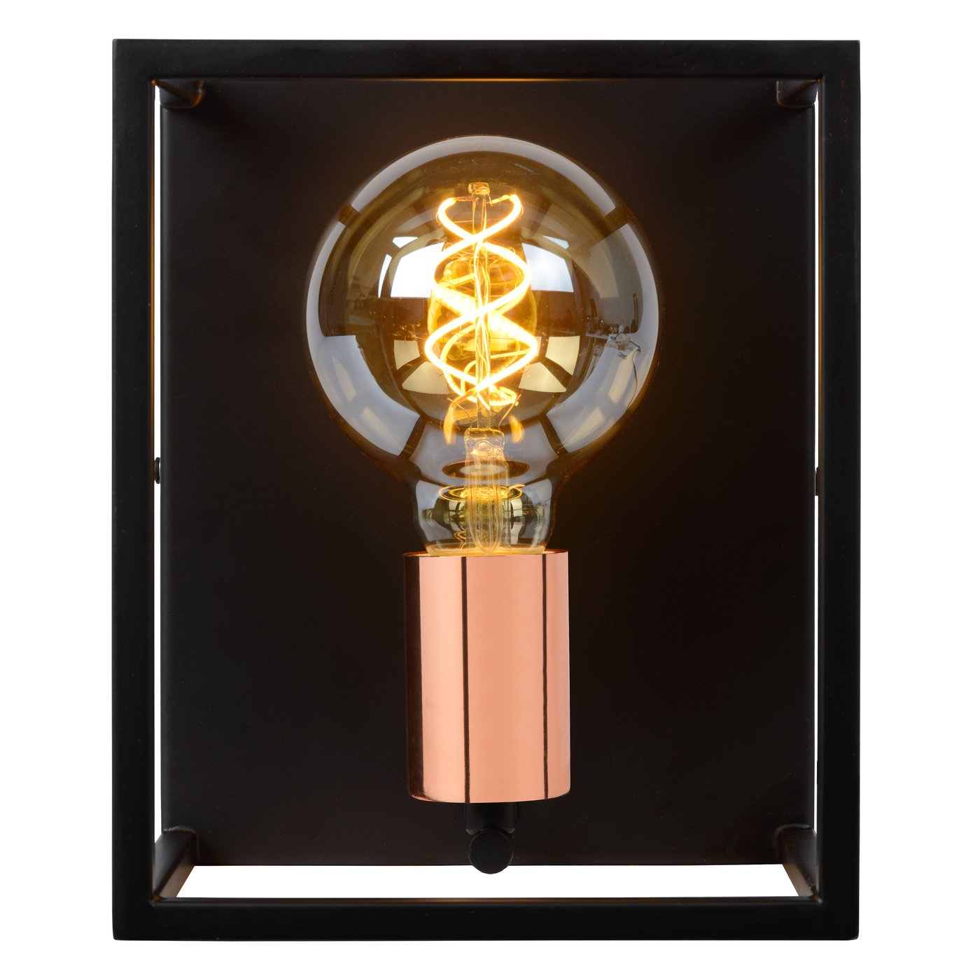 🆔 Настенный светильник прямоугольной формы с металлическим корпусом и стеклянными стенками черный ARTHUR by Lucide