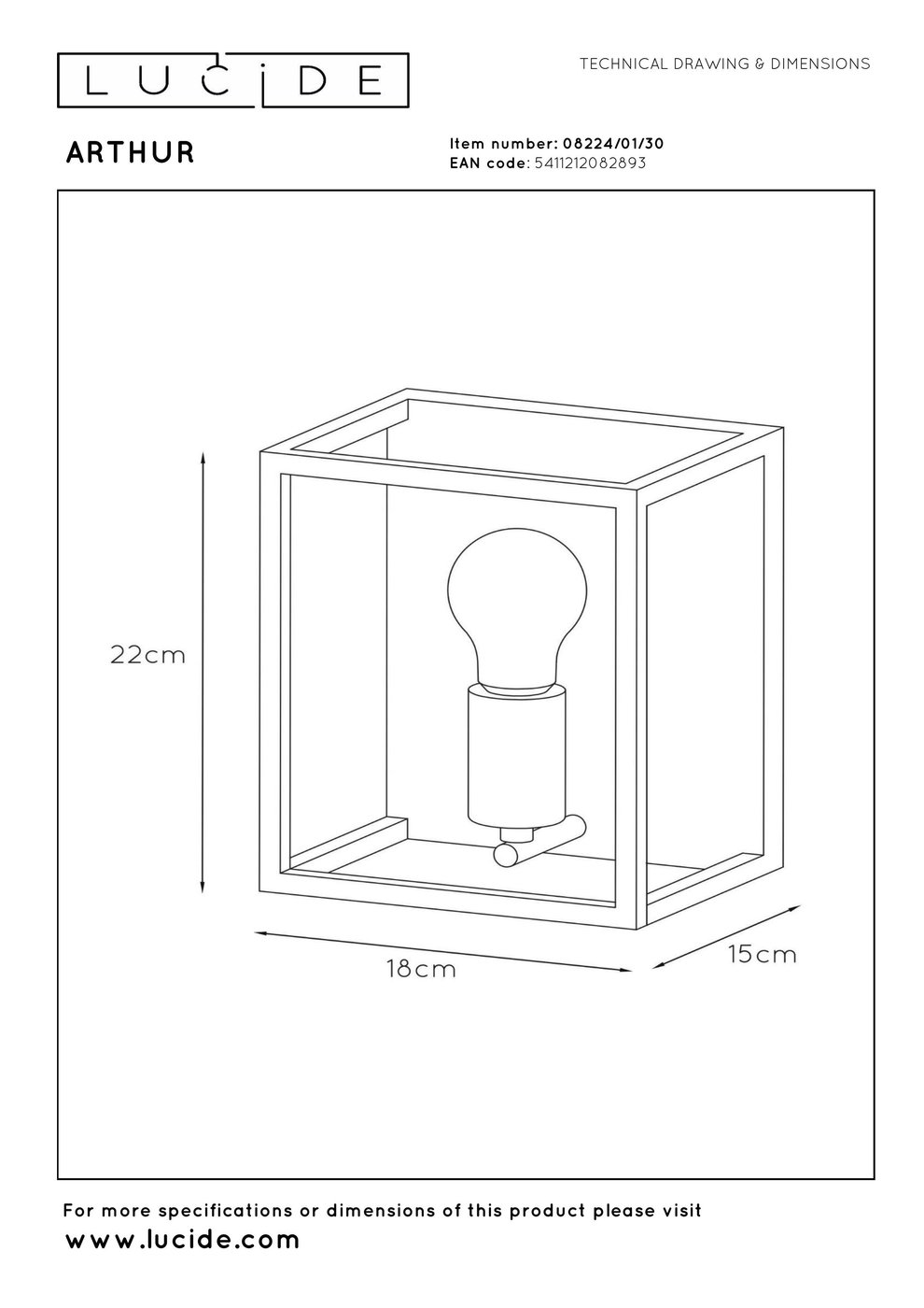 08224/01/30 Lucide Arthur настенный светильник прямоугольной формы с металлическим корпусом и стеклянными стенками