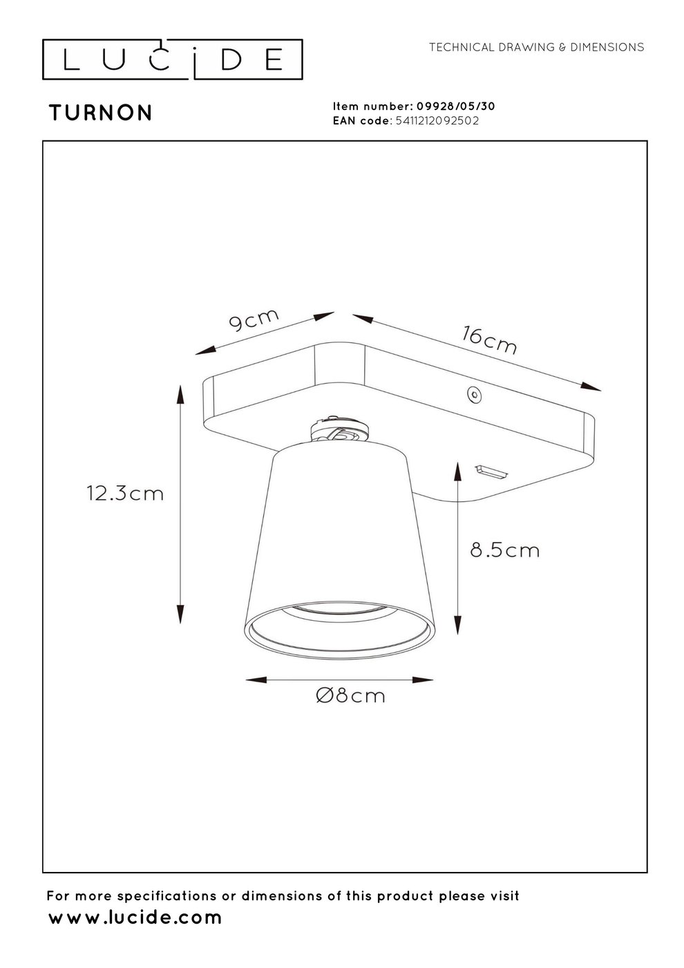 09928/05/30 Lucide Turnon настенный светильник с коническим плафоном чёрного цвета