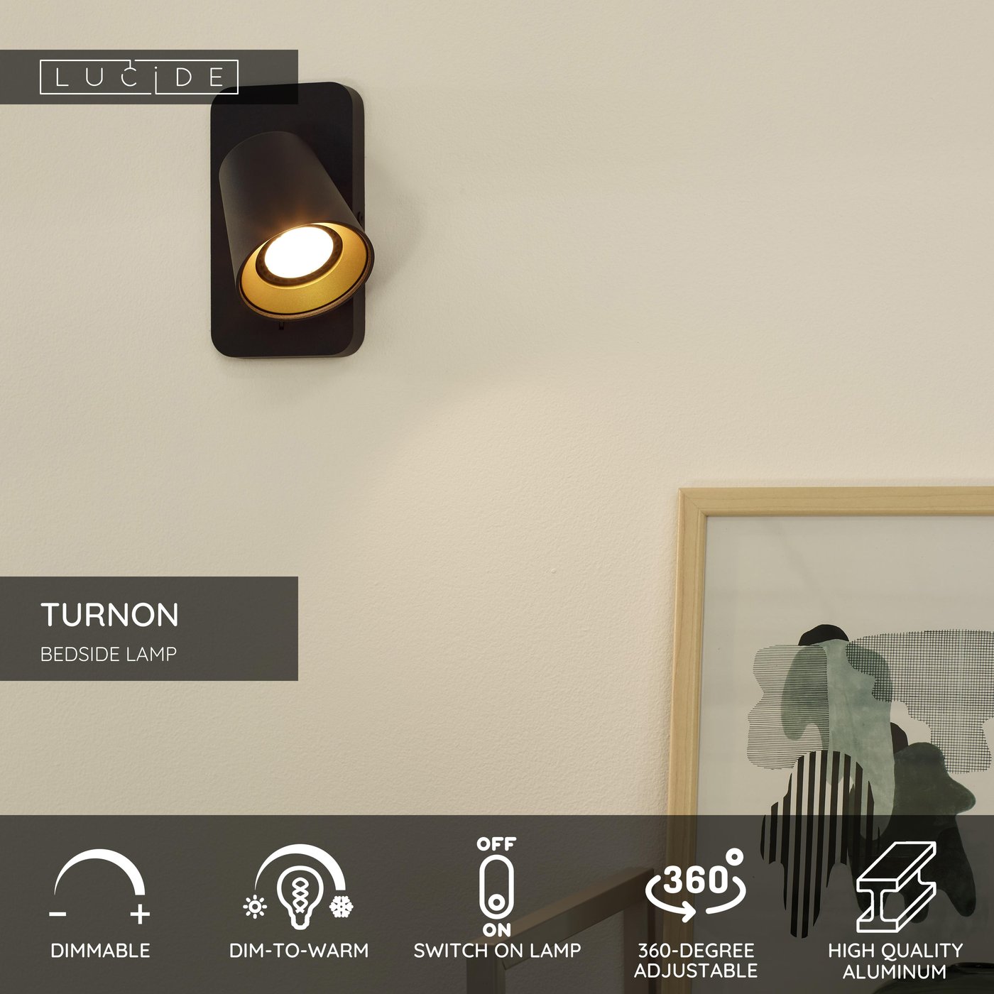 🆔 Настенный светильник с коническим плафоном чёрного цвета черный TURNON by Lucide