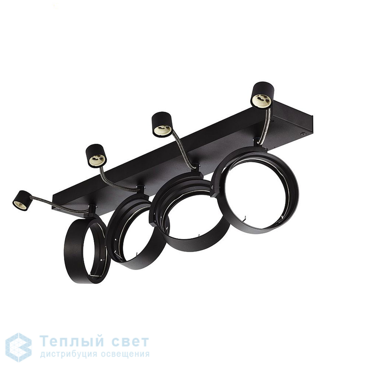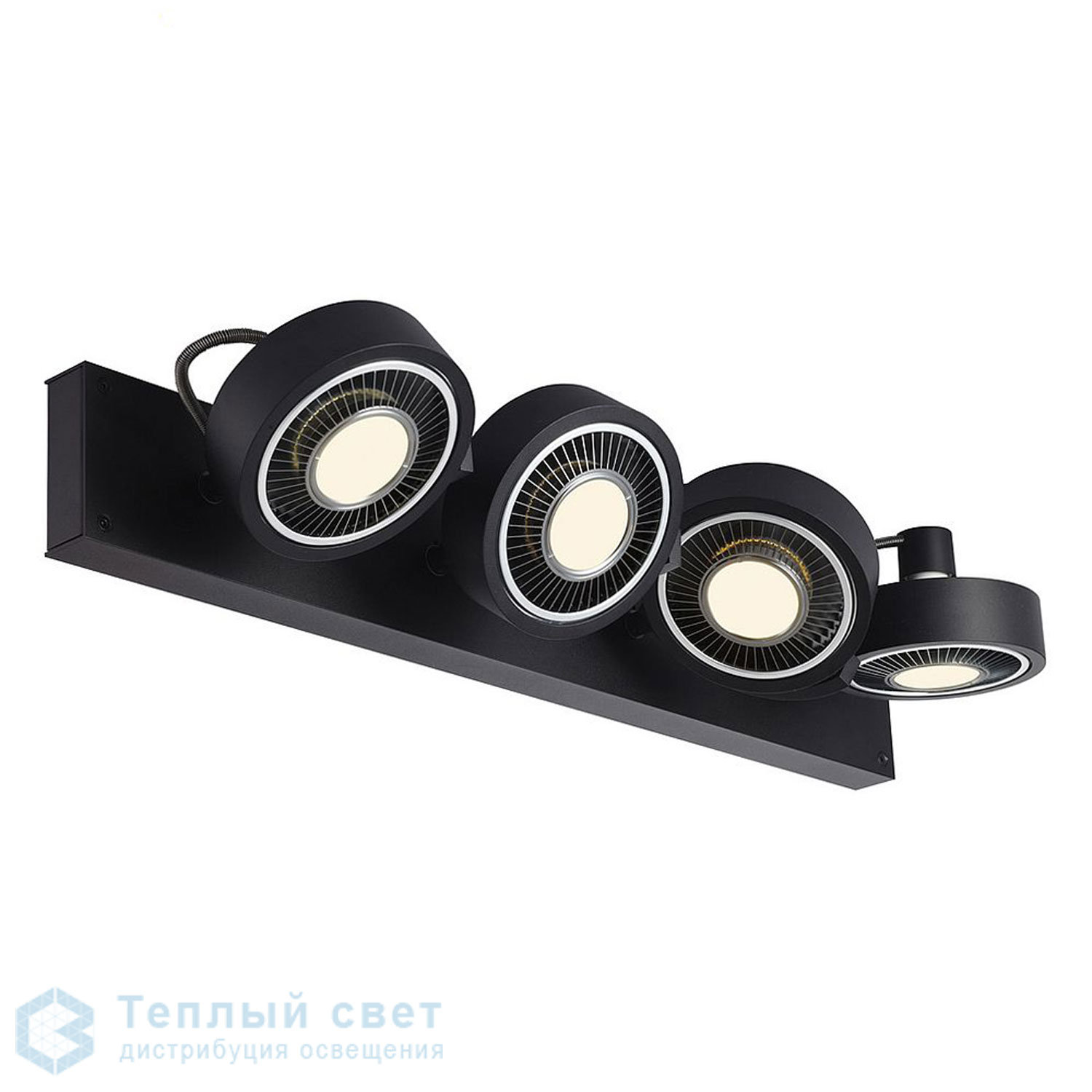 трековый потолочный спот с четырьмя регулируемыми головками черного цвета