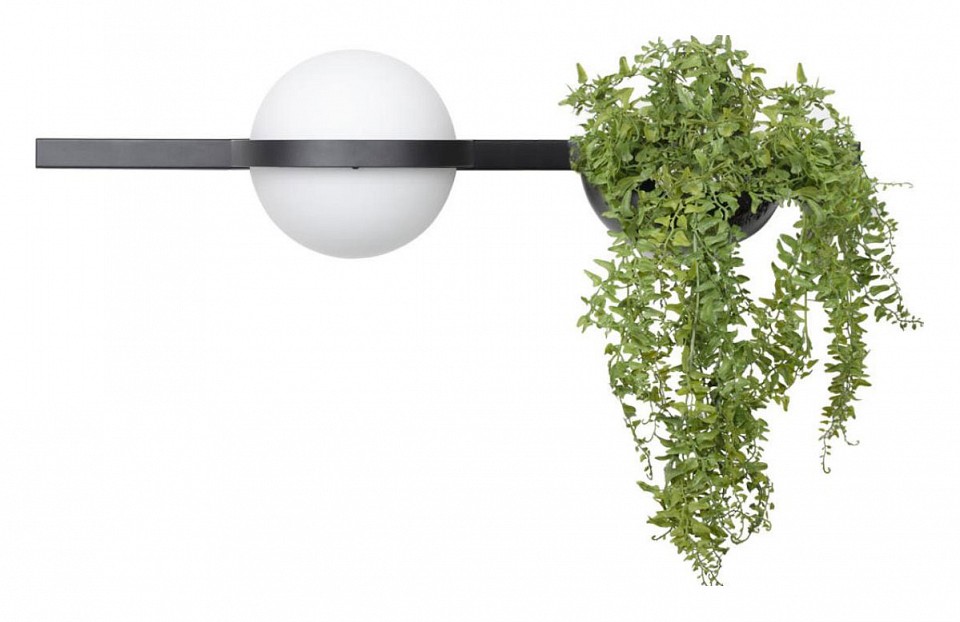 🆔 Настенное бра с кашпо для растений и встроенной подсветкой черный Jardin by Loft It