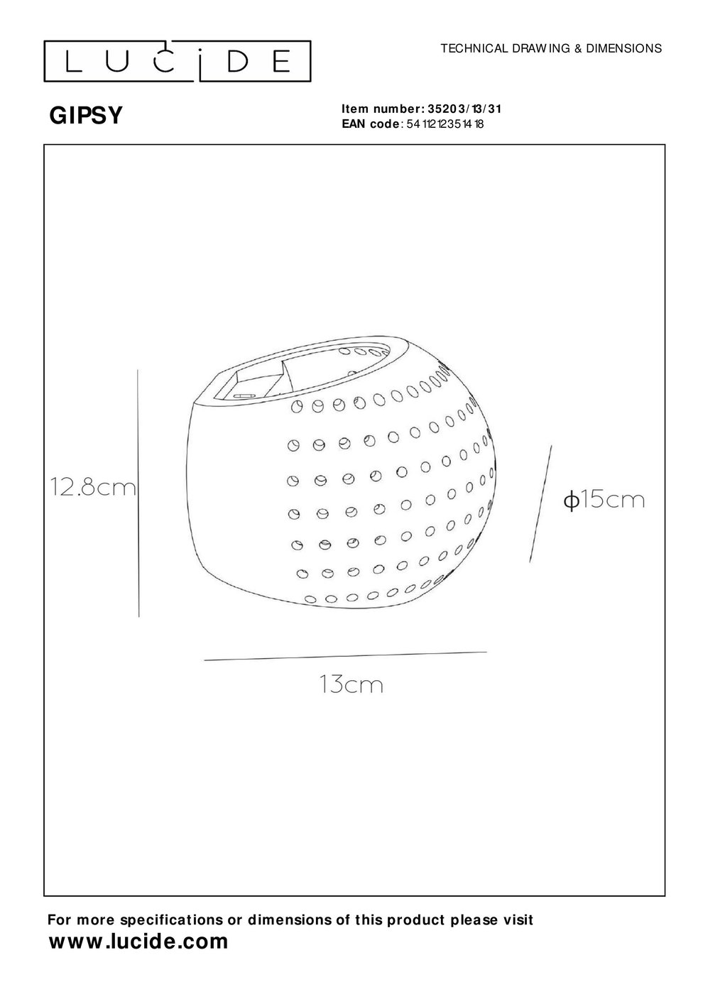 35203/13/31 Lucide Gipsy настенный светильник белого цвета с перфорированным орнаментом