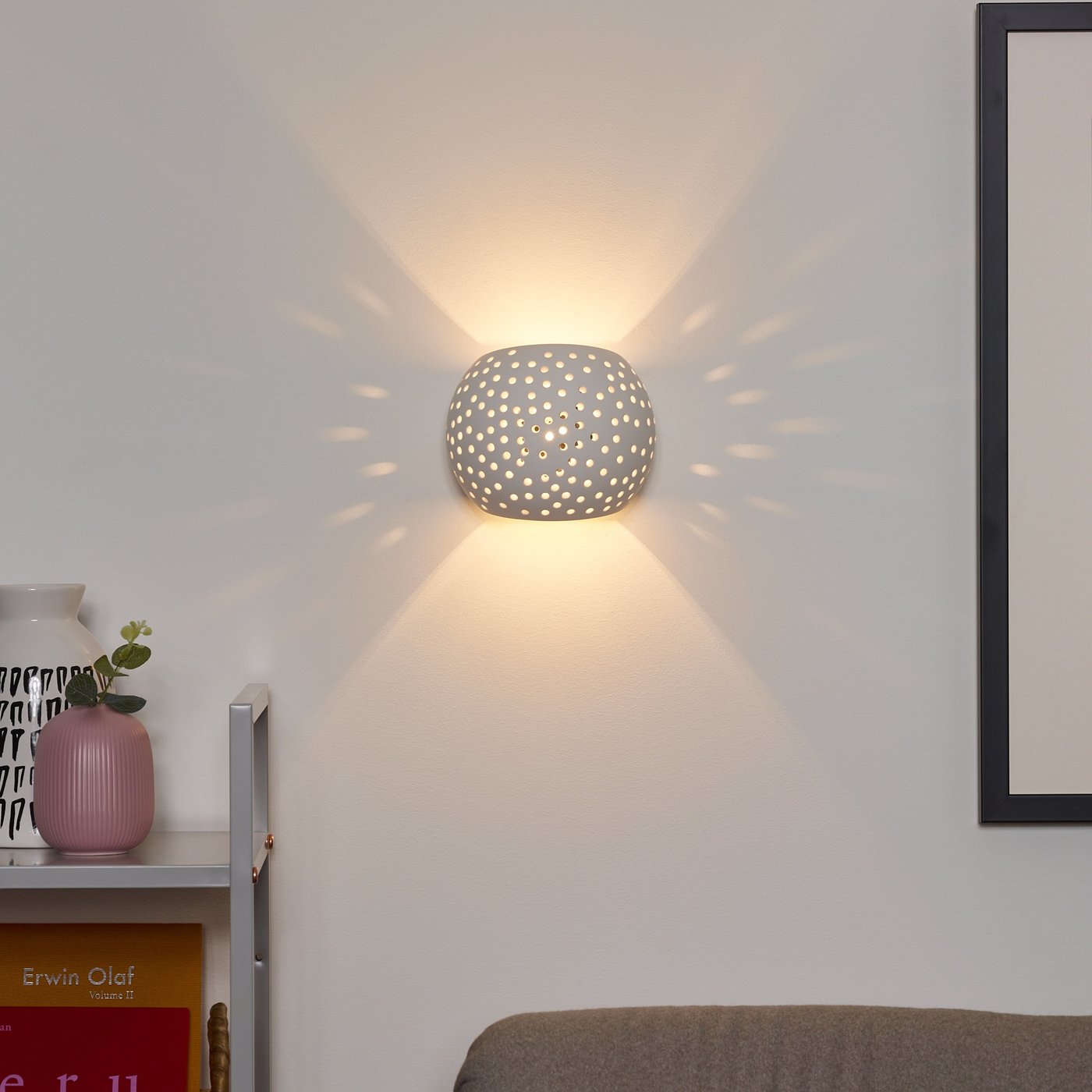 настенный светильник белого цвета с перфорированным орнаментом