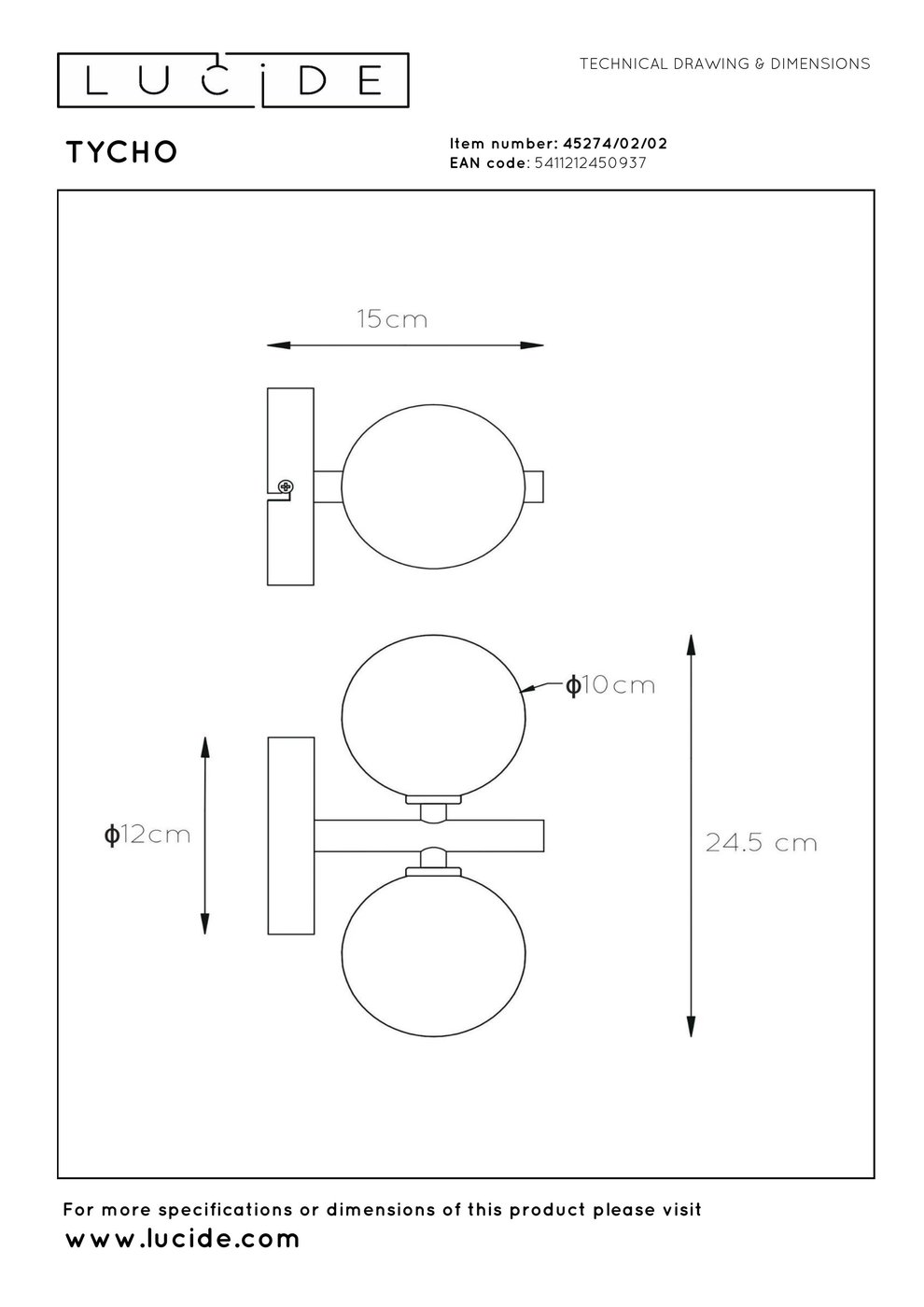 45274/02/02 Lucide Tycho настенный светильник с круглым плафоном и металлическим креплением