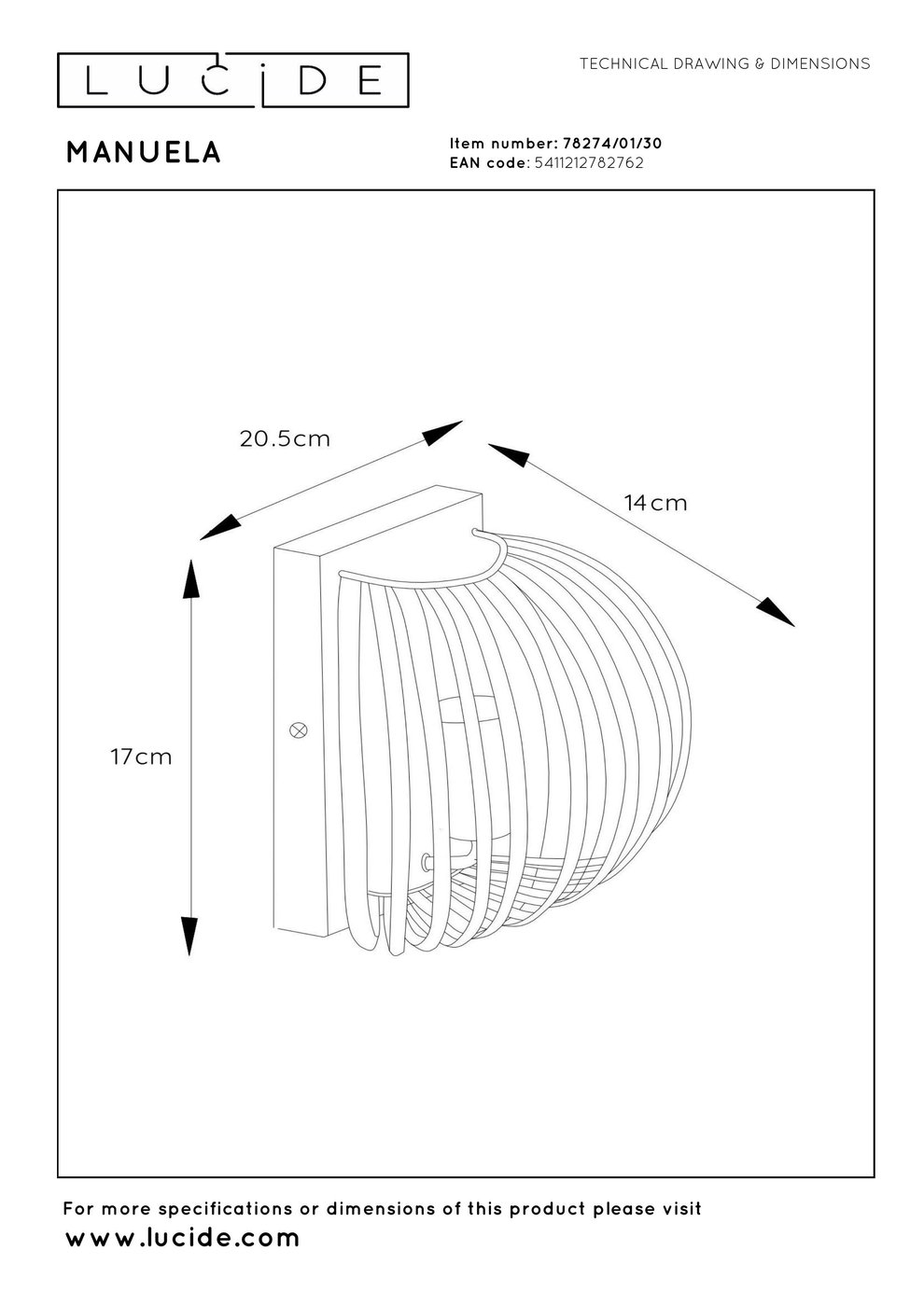 Manuela – воплощение элегантности благодаря своему уникальному дизайну. Изящные металлические полосы, начиная от настенной пластины, образуют полукруглый абажур вокруг лампочки. Этот настенный светильник отличается современным дизайном и относительно компактными размерами. Его размеры – 20,5 x 14 x 17 см. Благодаря своему эффектному и притягивающему взгляд дизайну, Manuela станет ярким акцентом в любом интерьере, гармонично вписываясь как в деревенский, так и в лаконичный стиль. Подключите этот настенный светильник к диммеру для регулировки яркости в любое время суток.