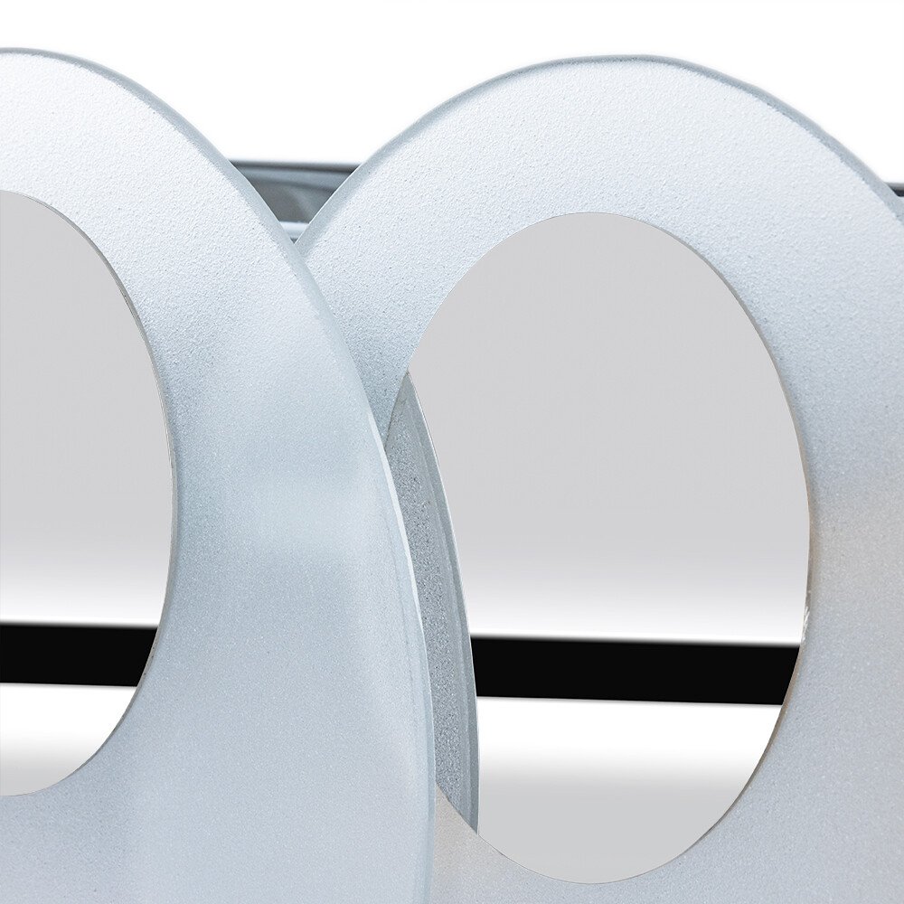 Настенный светильник Arte Lamp Rosabella выполнен в современном стиле и отличается выразительной геометрической композицией. Модель представляет собой конструкцию из двух круглых стеклянных плафонов белого цвета с матовой поверхностью, закреплённых на металлической арматуре с глянцевой хромированной отделкой. Светильник рассчитан на две лампы с цоколем E14 мощностью до 40 Вт каждая, при этом лампы в комплект не входят и могут быть накаливания или светодиодными. Общая мощность составляет 80 Вт, что позволяет использовать модель как функциональный настенный источник света. Габариты изделия равны 300 × 180 × 110 мм, благодаря чему светильник компактно размещается на стене и подходит для различных зон интерьера. Крепление осуществляется на монтажной пластине, предусмотрена возможность диммирования. Модель предназначена для использования в гостиной, кабинете или коридоре и гармонично дополняет современные интерьерные решения.