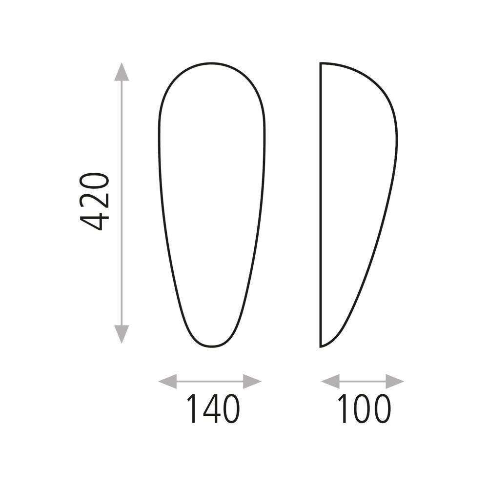 Настенный светильник с вытянутым овальным корпусом, предназначенный для использования внутри помещений. Основной элемент конструкции — плафон из стекла в отделке белый опал, закрывающий источник света и формирующий направленное вверх и вниз освещение. Светильник рассчитан на одну лампу с цоколем E27 и поддерживает работу с диммируемыми источниками. Подключается к сети 110–240 В. Степень защиты IP20 ограничивает применение сухими помещениями. По размерам высота составляет 42 см при ширине 14 см и вылете от стены 10 см, что определяет его как вертикальный настенный элемент для размещения в жилых и общественных интерьерах.