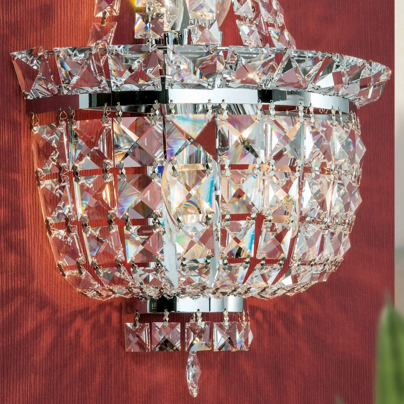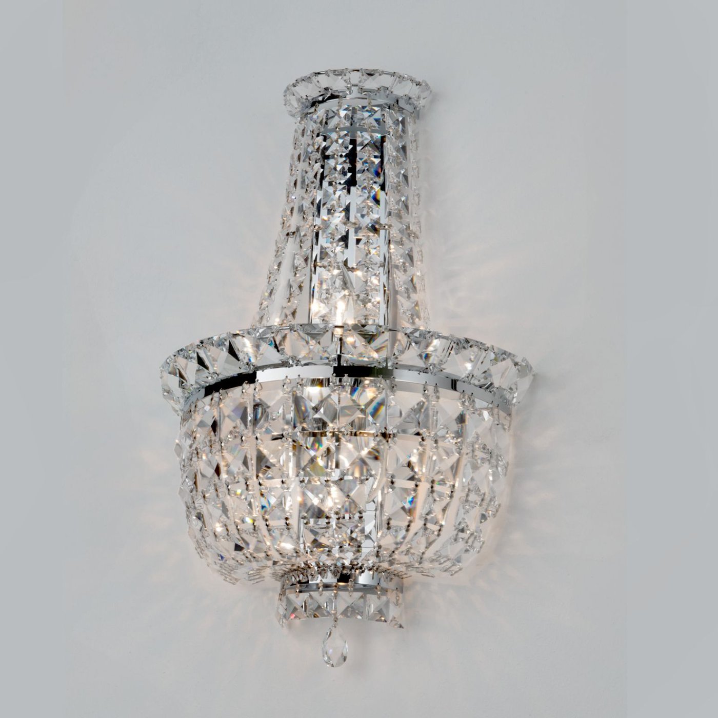 настенное хрустальное бра с многоярусными гранёными подвесками и хромовым основанием