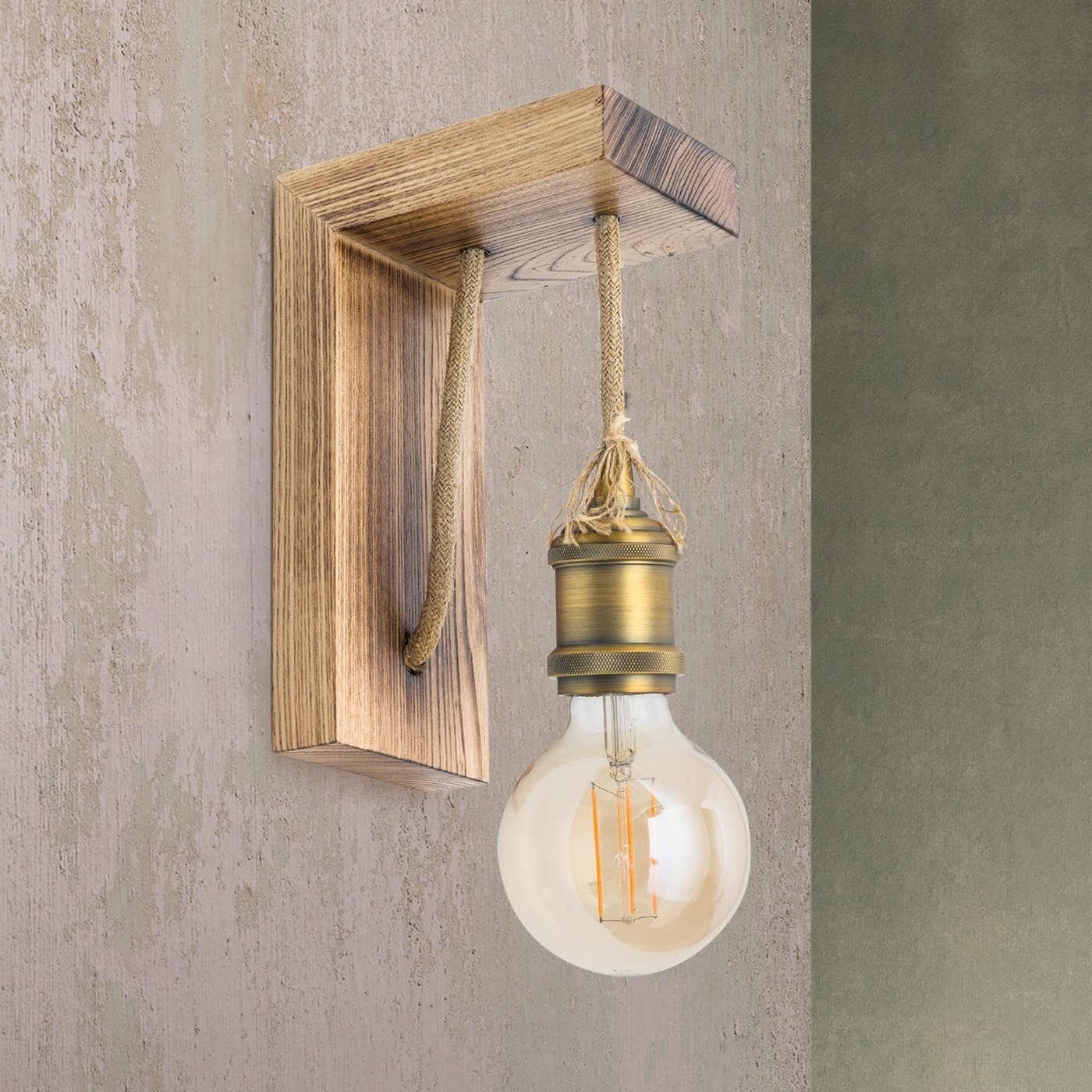Настенный светильник BASSENA в индустриальном стиле излучает суровое, аутентичное очарование. Простая конструкция состоит из кронштейна из облагороженного огнем дерева с подвесом из пеньковой веревки и патрона из матовой латуни. Эти три элемента придают ему стильный вид, словно сделанный своими руками. Этот светильник гармонично впишется в интерьеры с мужественными элементами дизайна, такими как неоштукатуренные стены, грубая стальная и деревянная мебель, а также просторные кожаные диваны. Теплые белые светодиодные лампы накаливания в форме груши или лампочки с золотистой отделкой идеально подходят для этого настенного светильника, поддерживая аутентичную, мощную атмосферу индустриального стиля. Кроме настенного светильника, также доступен подвесной светильник BASSENA.