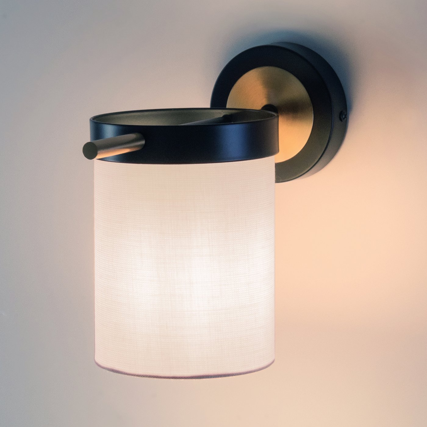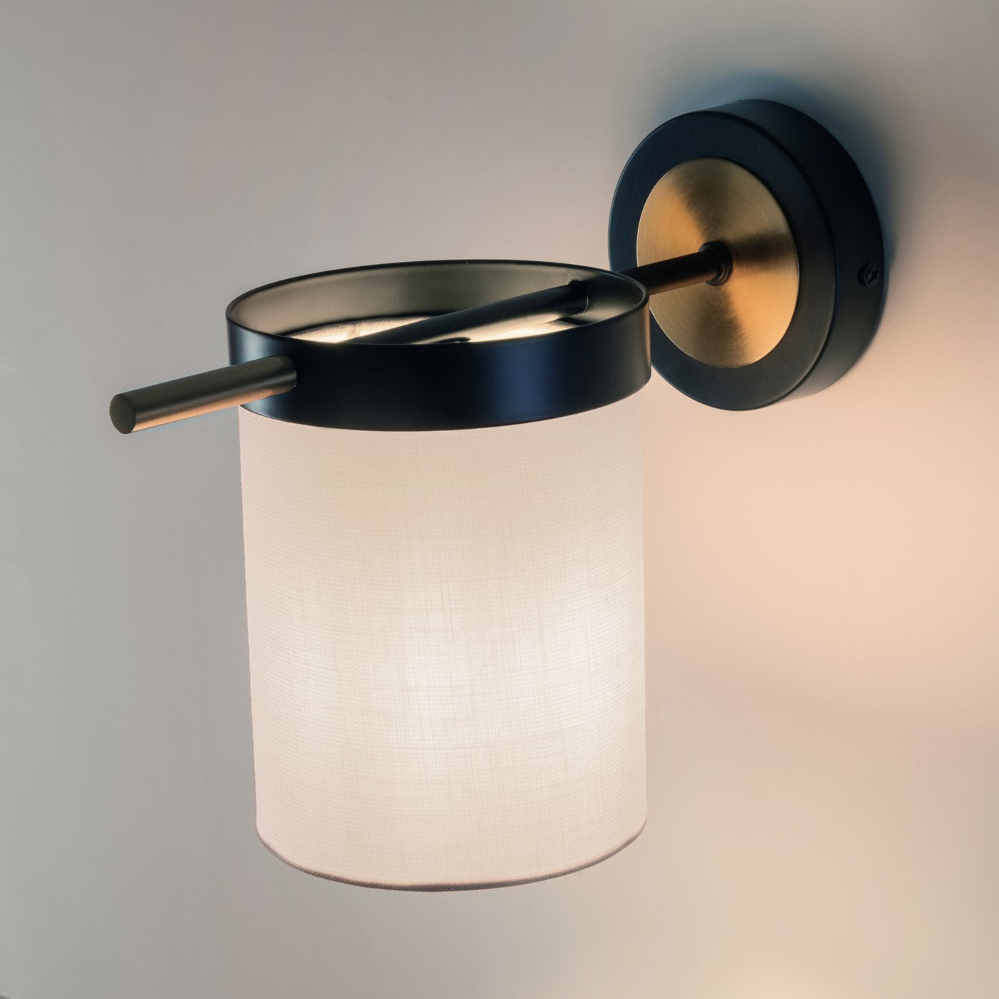 Настенное бра с цилиндрическим тканевым абажуром создаёт локальное освещение и подходит для размещения у кровати или в зоне чтения. В модели Freya из коллекции Bogy чёрная металлическая арматура с латунными акцентами удерживает бежевый абажур высотой 150 мм, который мягко рассеивает свет и скрывает источник. Когда вы сидите рядом и поворачиваете голову к книге, поток проходит через ткань и распределяется вперёд и вниз без резкого блика в глазах. Цоколь E14 рассчитан на лампу мощностью до 40 Вт, что позволяет выбрать комфортный уровень яркости для вечернего сценария или более заметный свет в коридоре. Компактная глубина и крепление на планке делают бра удобным для установки в помещениях с невысокими потолками. Степень защиты IP20 предполагает использование в сухих жилых интерьерах, где важен мягкий акцентный свет и аккуратная геометрия формы.