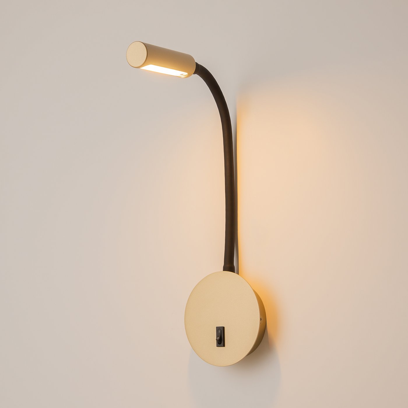 настенный светильник в оттенке матового золота на гибкой стойке