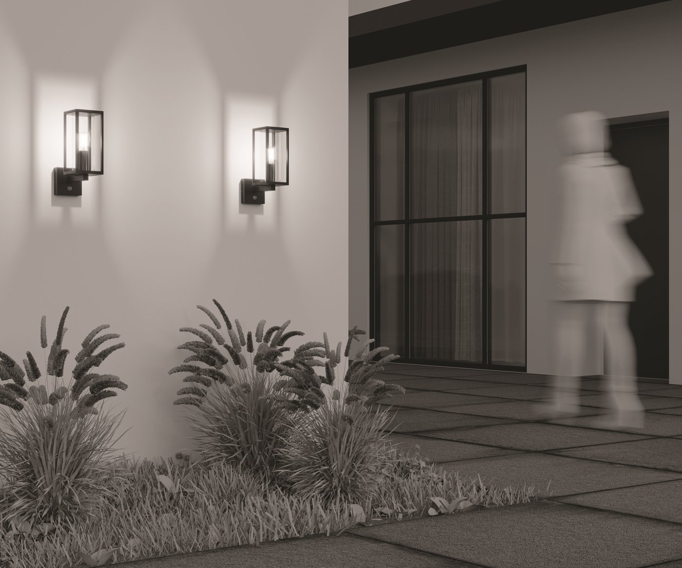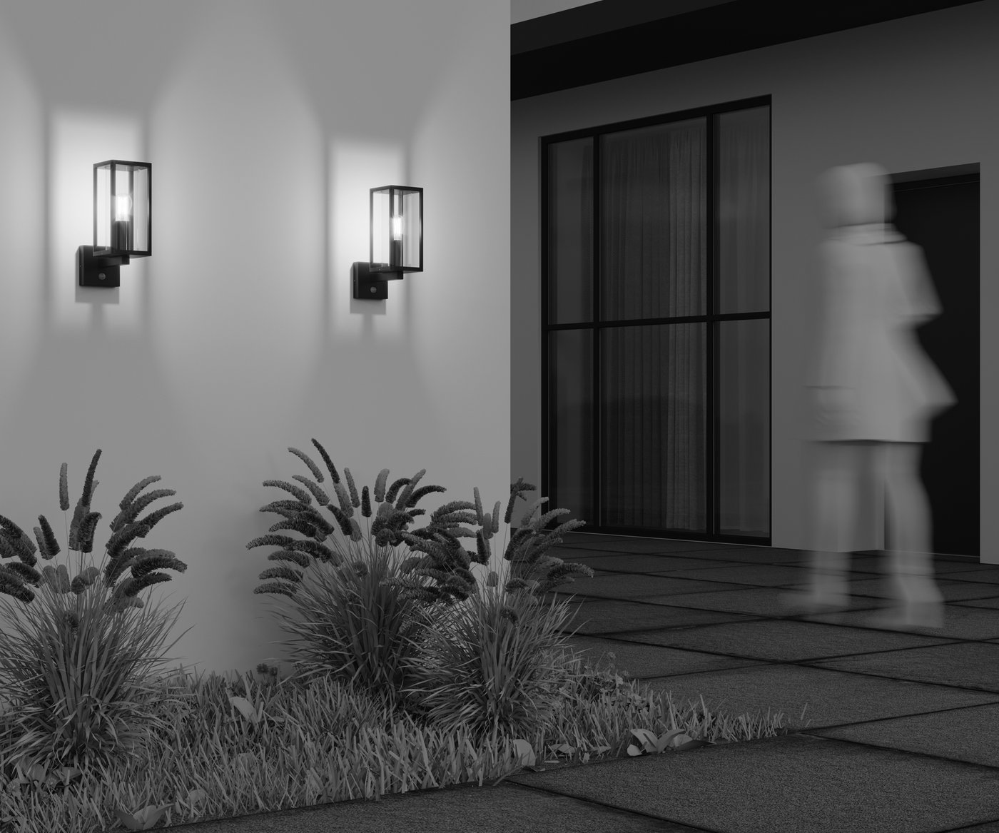 Материал корпуса — алюминий, цвет — графит. Материал рассеивателя — PC-пластик. Источник света — лампа с цоколем Е27. Наличие моделей со встроенным датчиком движения. Степень защиты от пыли и влаги - IP65.