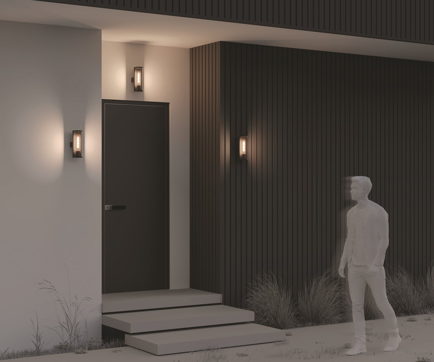 Алюминиевый корпус, цвет - графит. Рассеиватель из прочного тонированного пластика в 2-х формах: квадратный и округлый. Идеален для экстерьеров в стиле лофт и освещения входных зон. Источник света - лампа с цоколем Е27. Степень защиты - IP65.