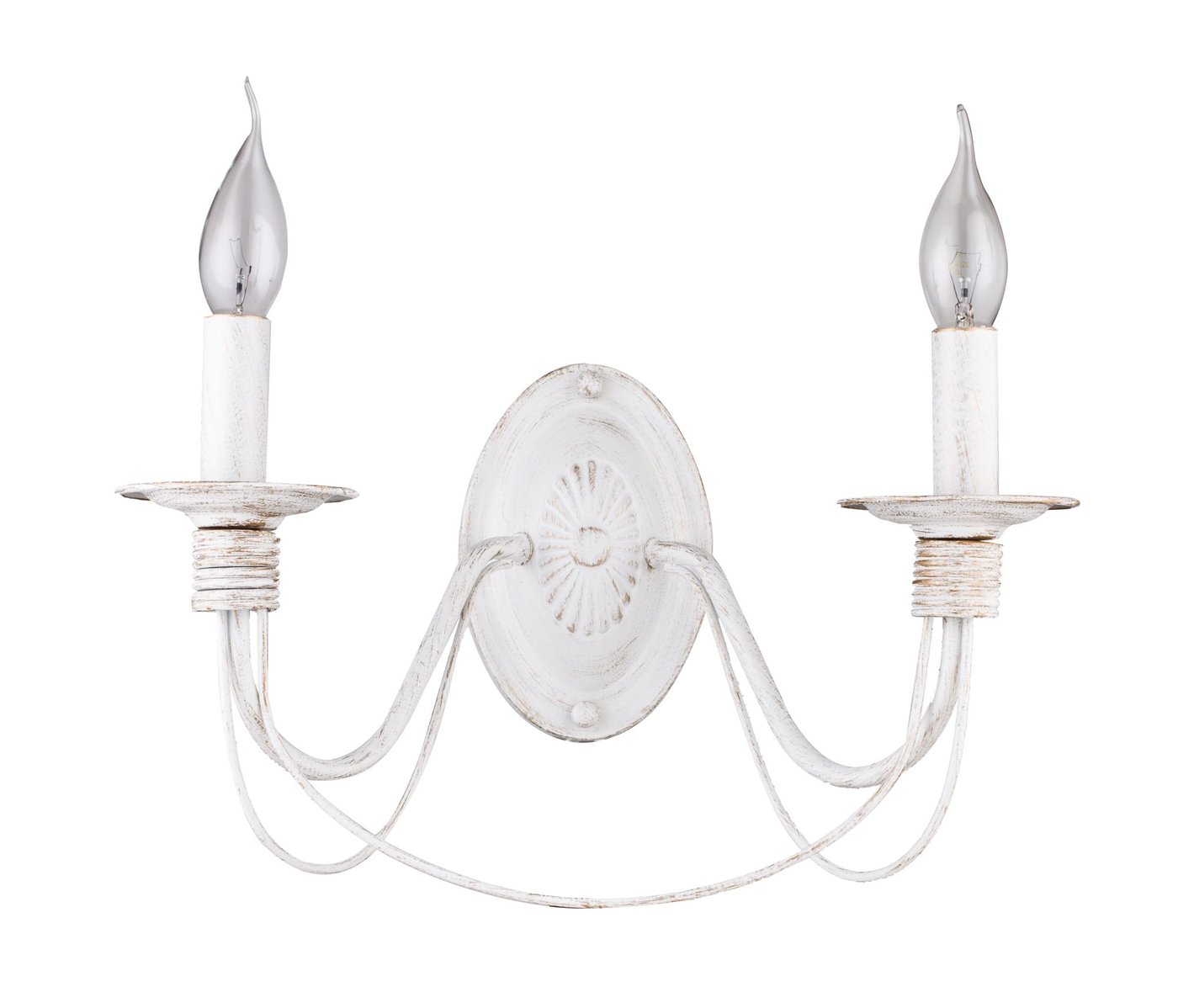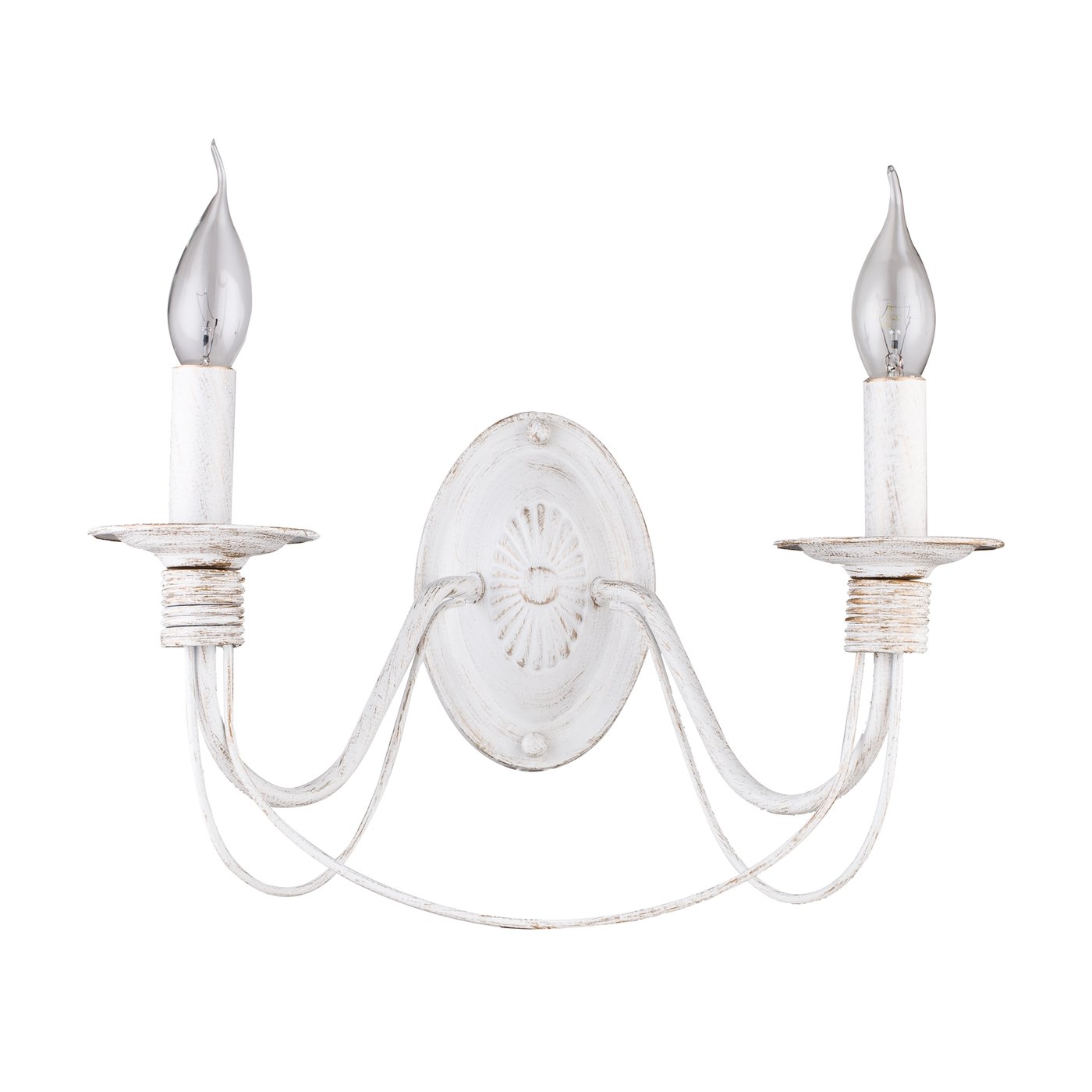 настенное бра с двумя рожками и декоративным основанием бело-золотого оттенка
