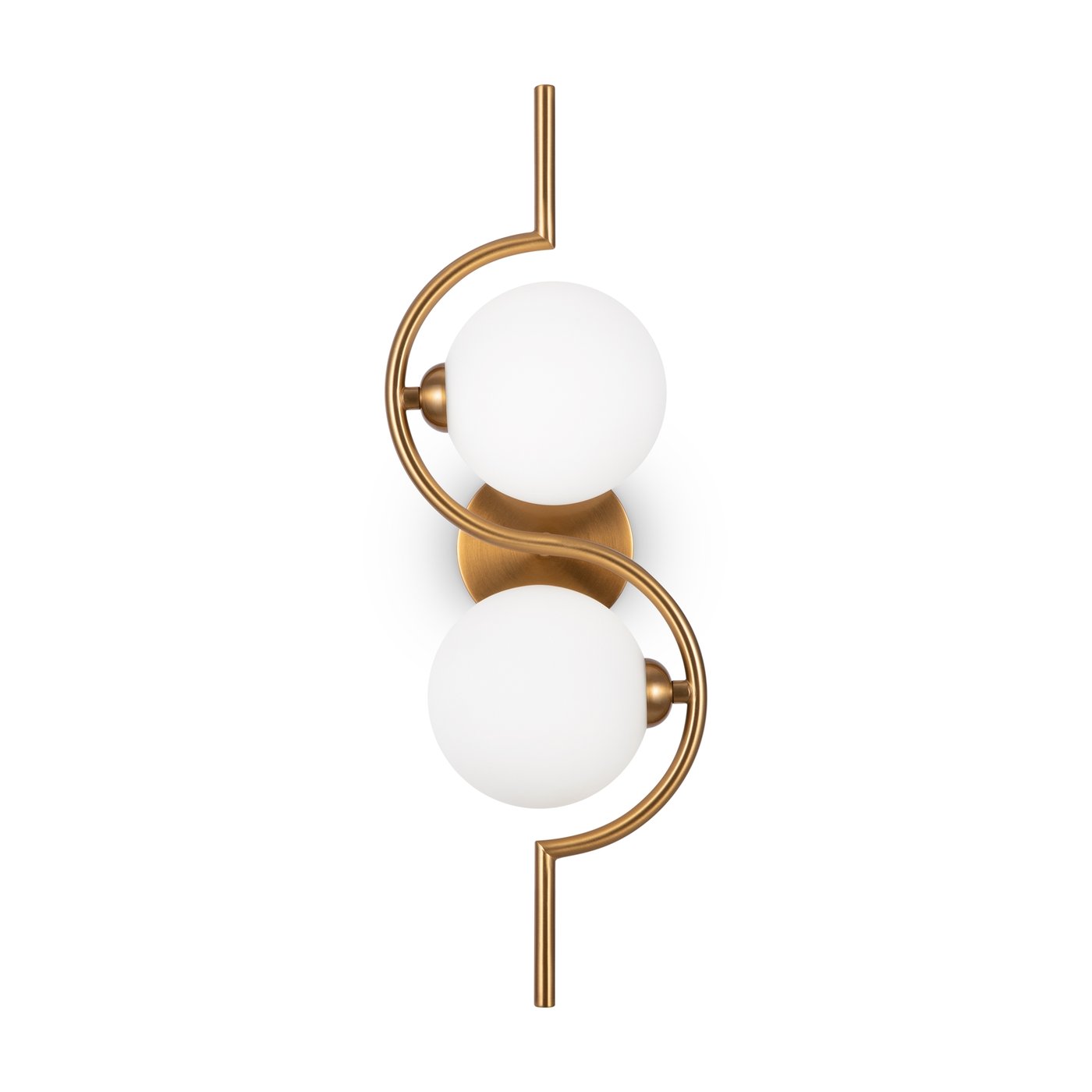 настенный светильник с двумя стеклянными шарами на вертикальной латунной штанге