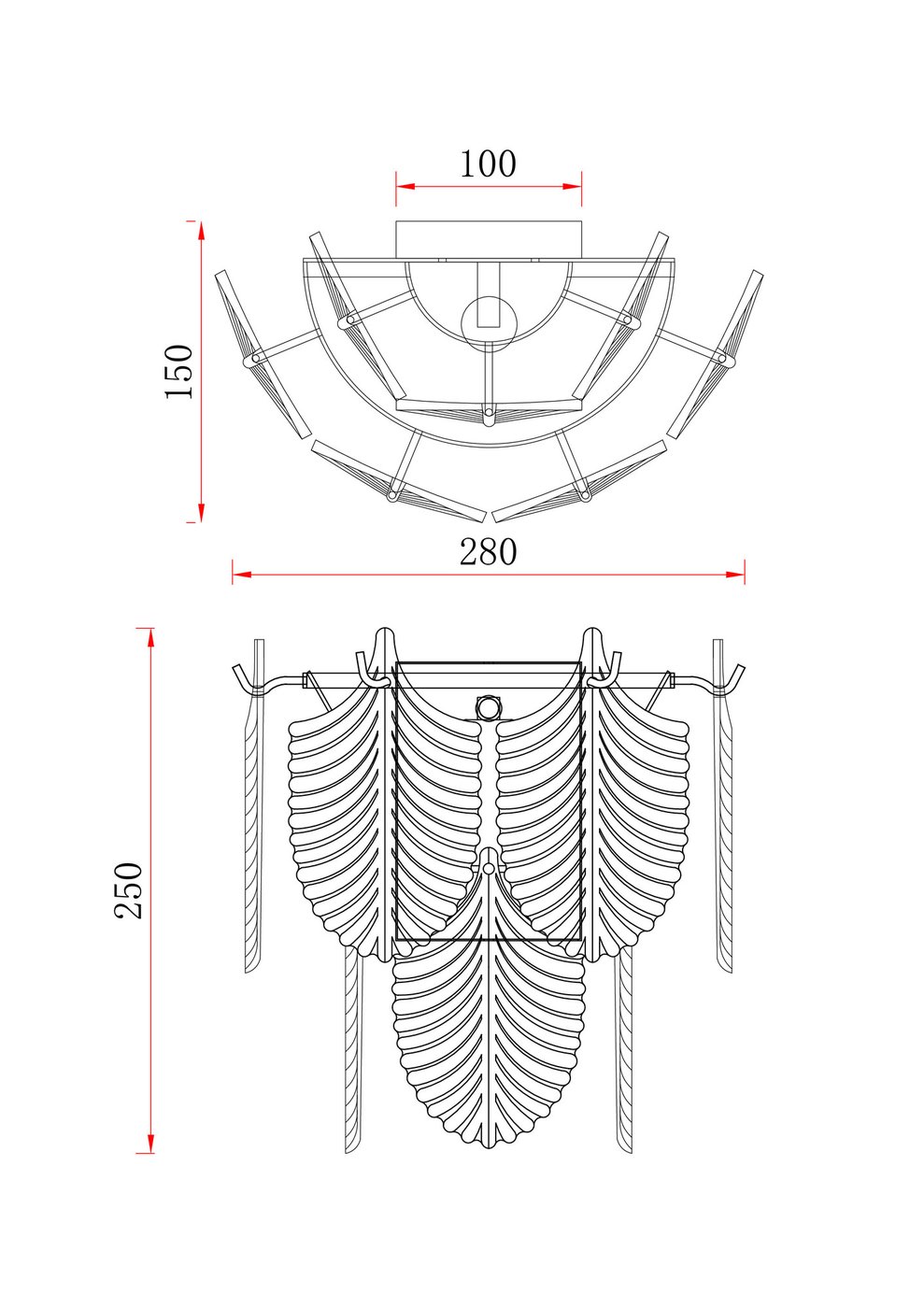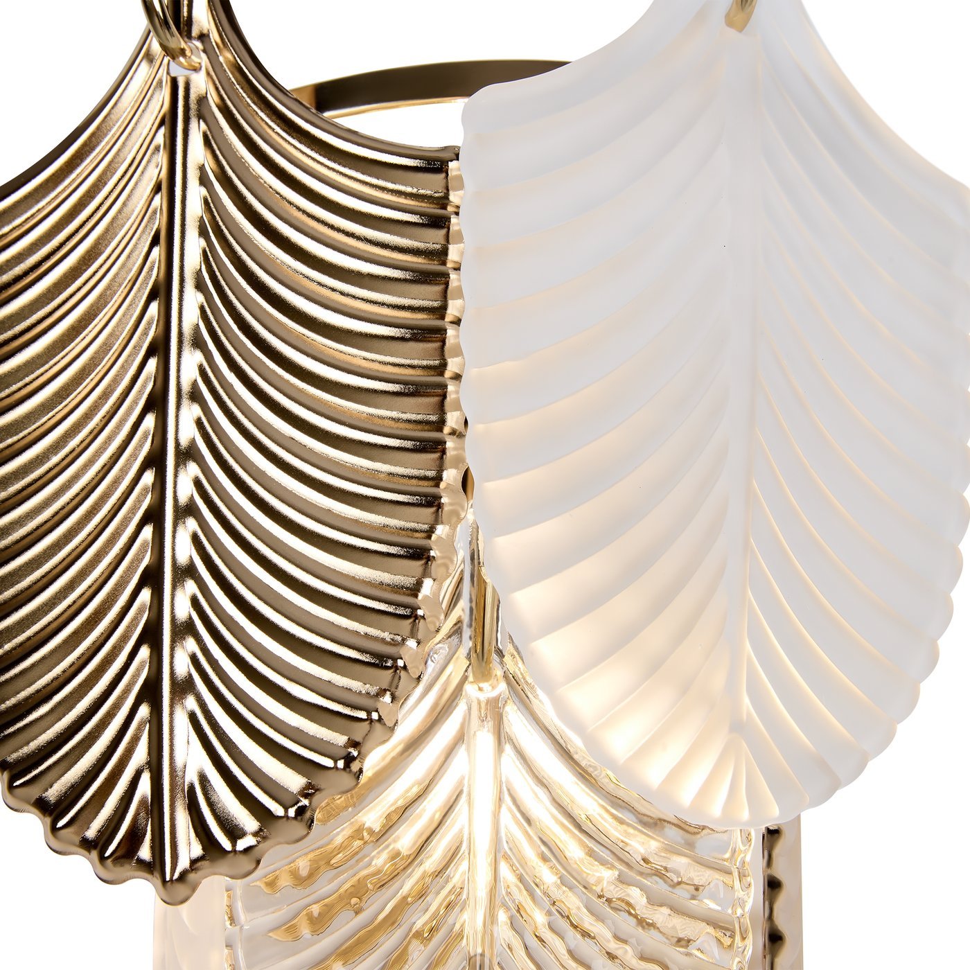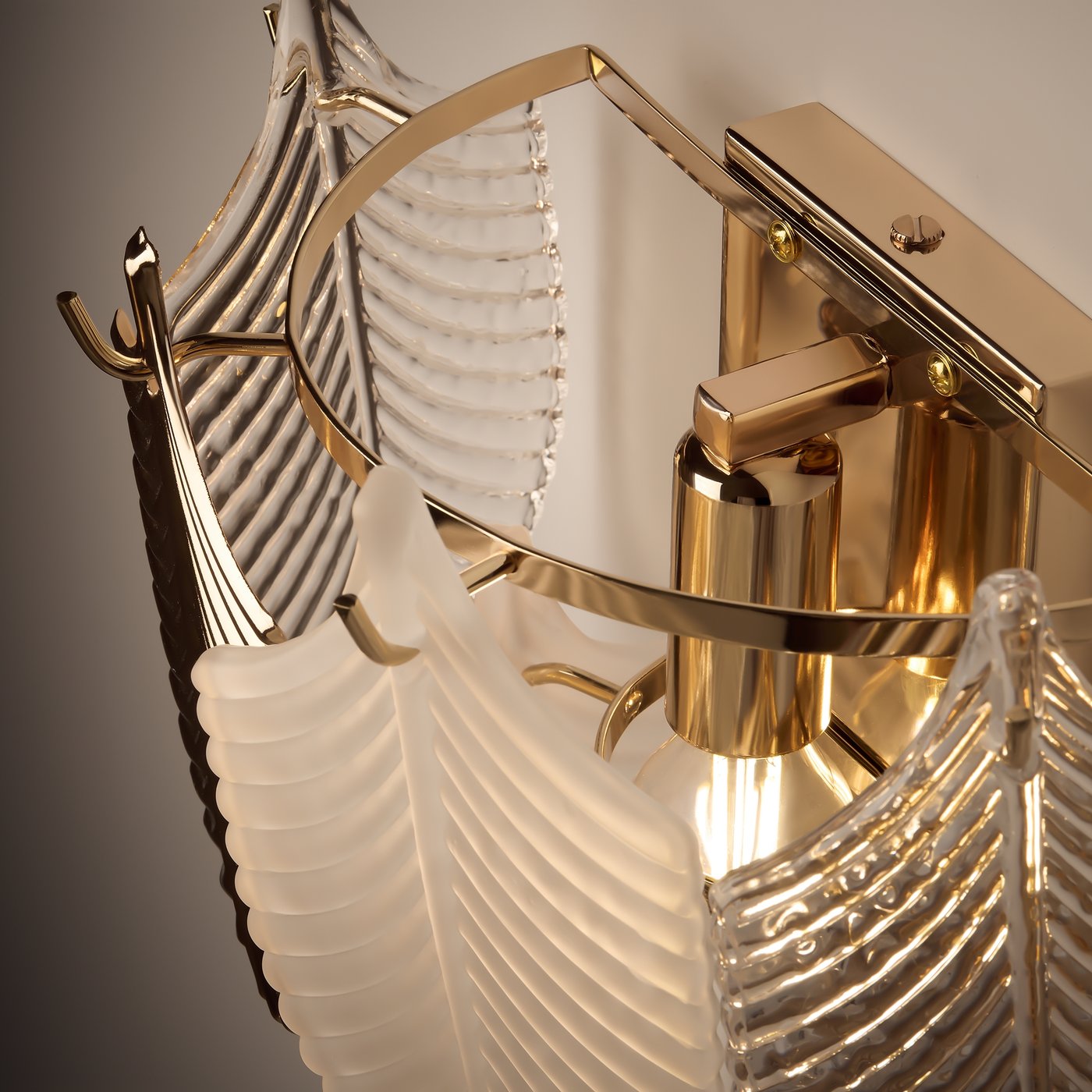 настенный светильник с плафонами в форме перьев в золотом оформлении