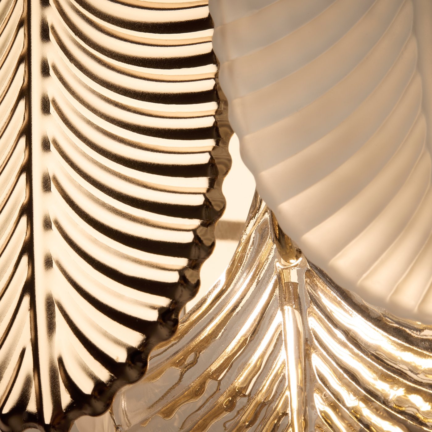 Настенное бра с объёмной композицией из рельефных лепестков создаёт мягкий отражённый свет и выразительный декоративный акцент. В модели Freya из коллекции Hloya металлическая арматура цвета французского золота сочетается с прозрачными фактурными стеклянными элементами, которые частично перекрывают источник и рассеивают поток. Лампа с цоколем E14 мощностью до 60 Вт размещена внутри, поэтому свет проходит сквозь стекло и отражается от металлических поверхностей, формируя тёплое свечение без прямого ослепления. При установке в гостиной или спальне бра работает как фоновый свет и подчёркивает фактуру стены за счёт игры теней от лепестков. Компактные размеры позволяют использовать модель в парной установке по обе стороны зеркала или кровати. Степень защиты IP20 рассчитана на использование в сухих помещениях с подключением через монтажную планку.