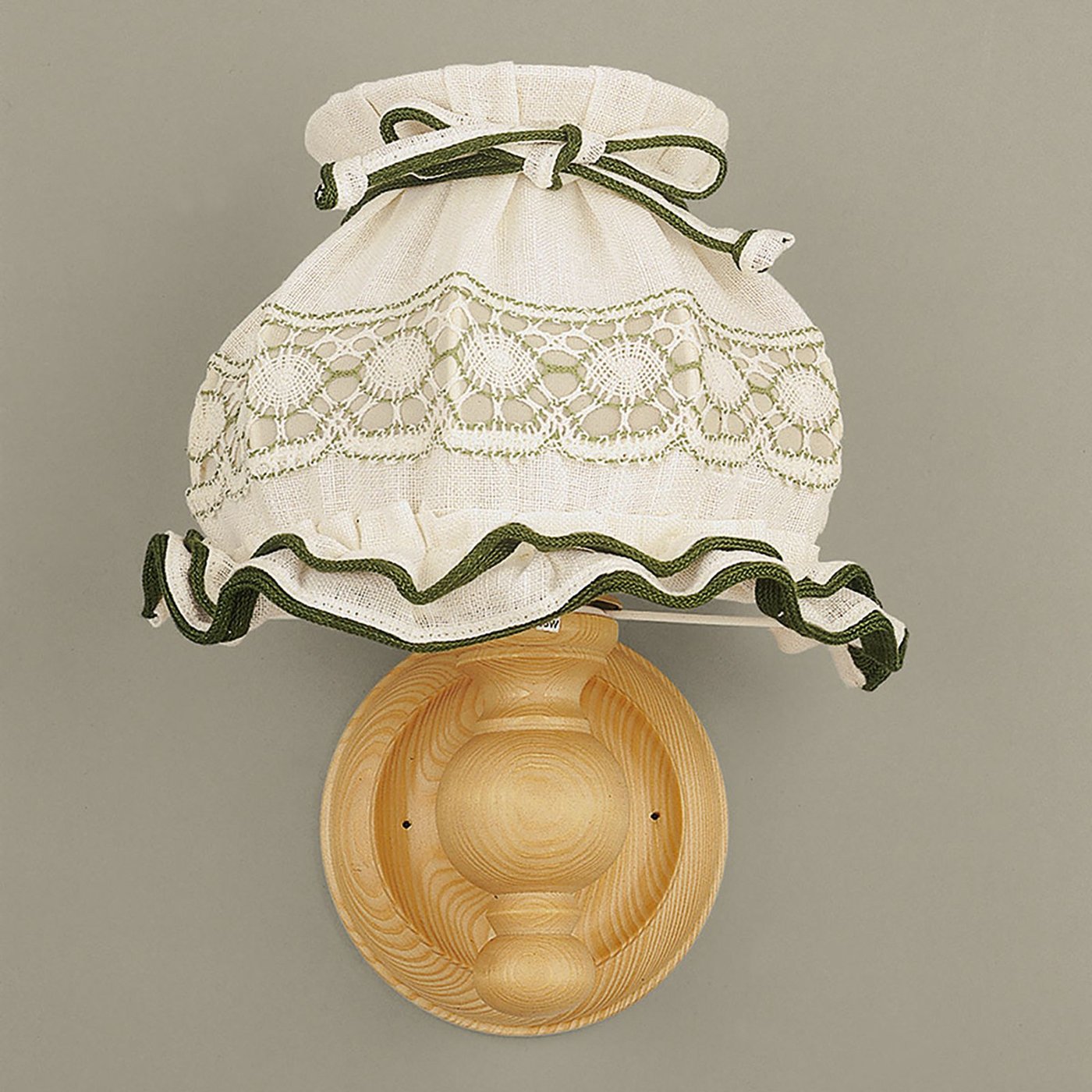 Настенное бра предназначено для интерьерного освещения в стиле кантри. Корпус выполнен из дерева с натуральной отделкой, абажур из льняной ткани комбинирует бежевые и зелёные оттенки. Светильник рассчитан на одну лампу с цоколем E27 и максимальной мощностью 40 Вт, допускает использование светодиодных ламп и диммирование. Размеры изделия: ширина 25 см, высота 30 см, глубина 17 см. Класс защиты II и IP20 обеспечивает безопасное использование без заземления. Конструкция бра с декоративной тканевой частью и деревянным основанием фиксируется на стене, создавая локальное освещение с регулируемой яркостью.