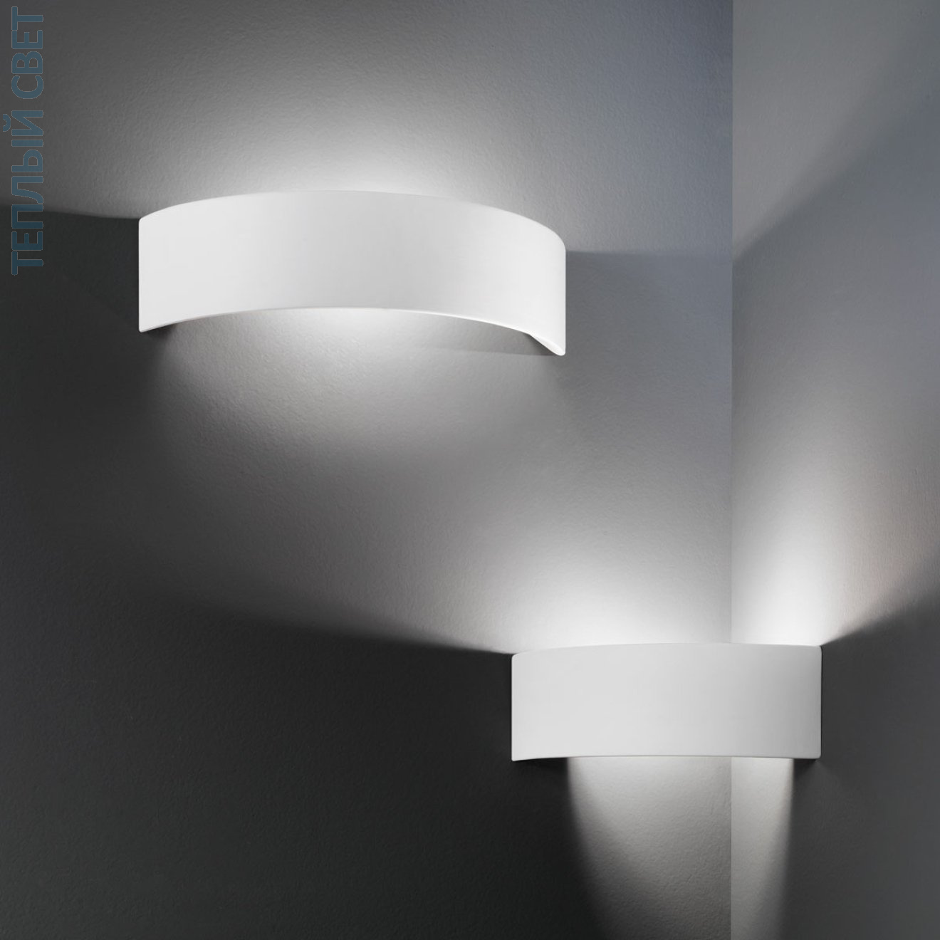Настенный светильник с отражённым светом, предназначен для создания мягкой подсветки стен. Корпус выполнен в виде изогнутой горизонтальной панели, которая перекрывает источник света и направляет поток вверх и вниз, формируя рассеянное освещение без прямого ослепления. Конструкция компактная, ширина около 300 мм при высоте 100 мм, что позволяет использовать его как одиночный элемент или выстраивать в ряд. Корпус окрашен в белый цвет. Используется одна лампа с цоколем G9, источник не указан как встроенный. Подходит для установки в жилых и общественных интерьерах, где важен мягкий световой эффект на поверхности стены.