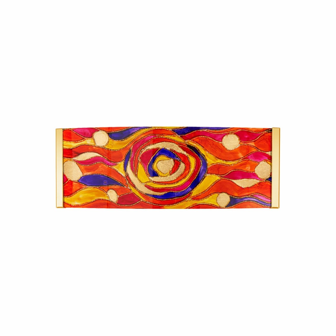 EMOZIONE: exclusive lighting, designed to create amazing ambience, breathtaking glamour and brilliant blaze of light. Geometric shapes and a sparkling rain of crystals meet precious materials. Finest artwork, various hand-painted decors. Our hand-painted AQUA RED decor shows a splendid flow of colours and shapes in harmony with finest leaf gold. Each piece is a unique artwork from Vienna.
