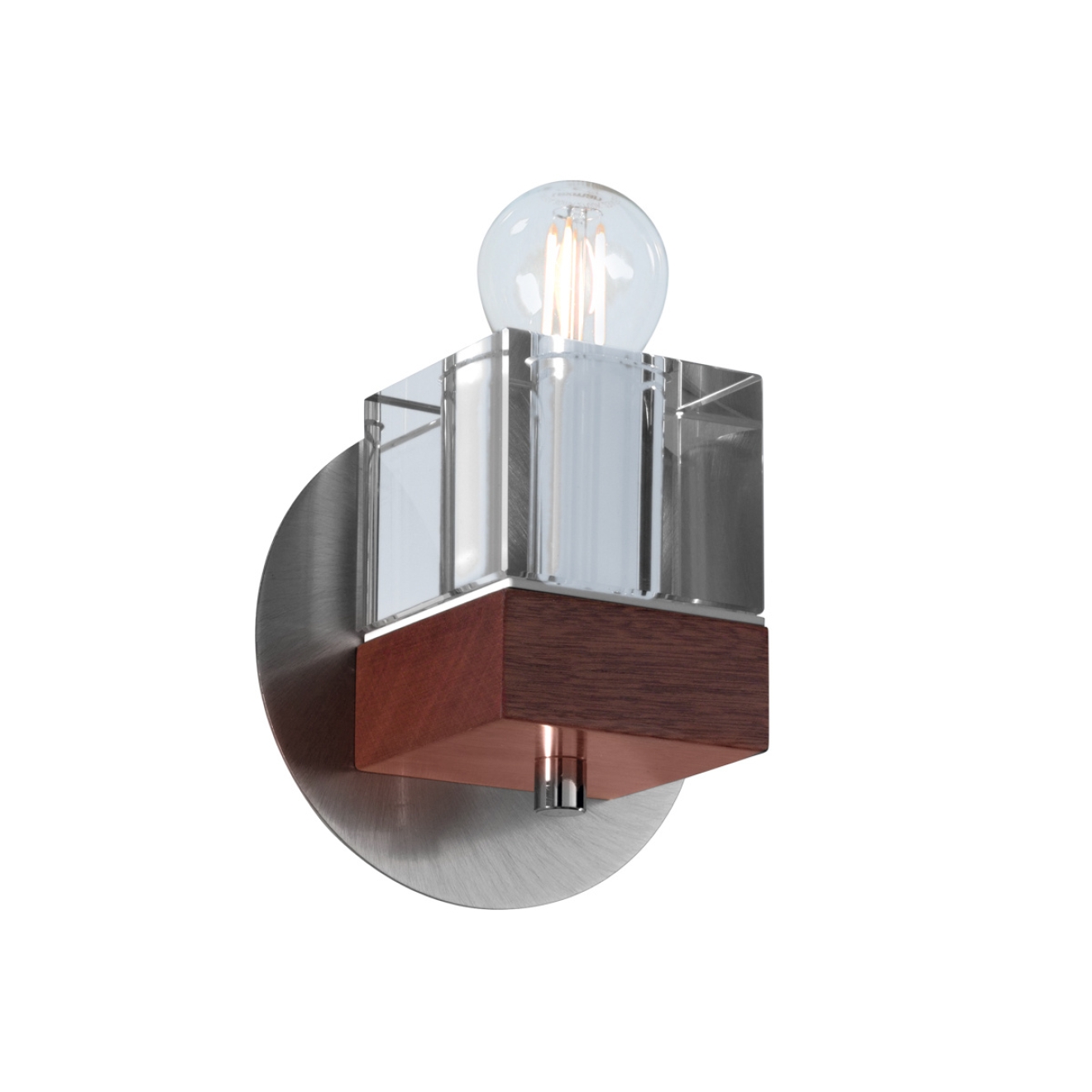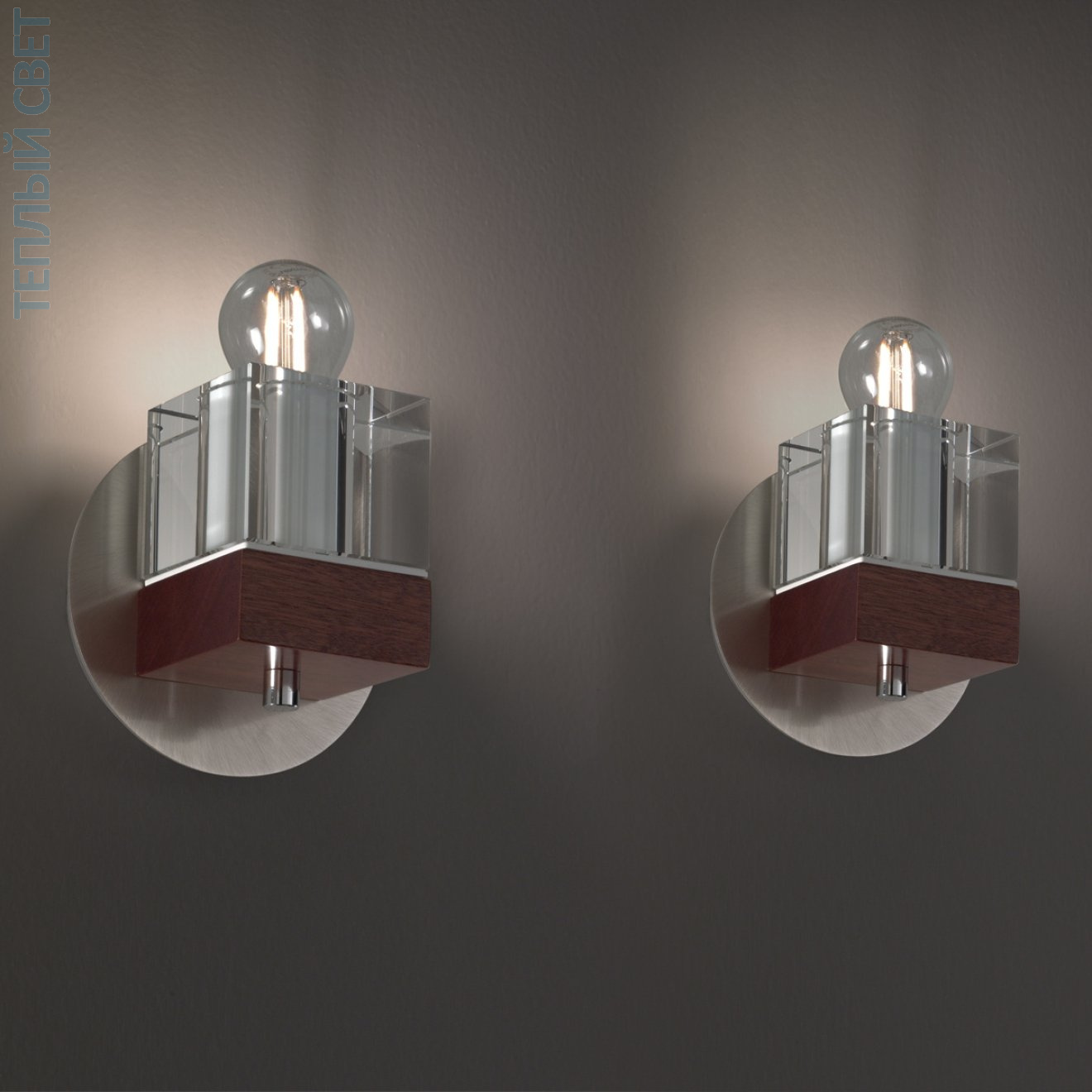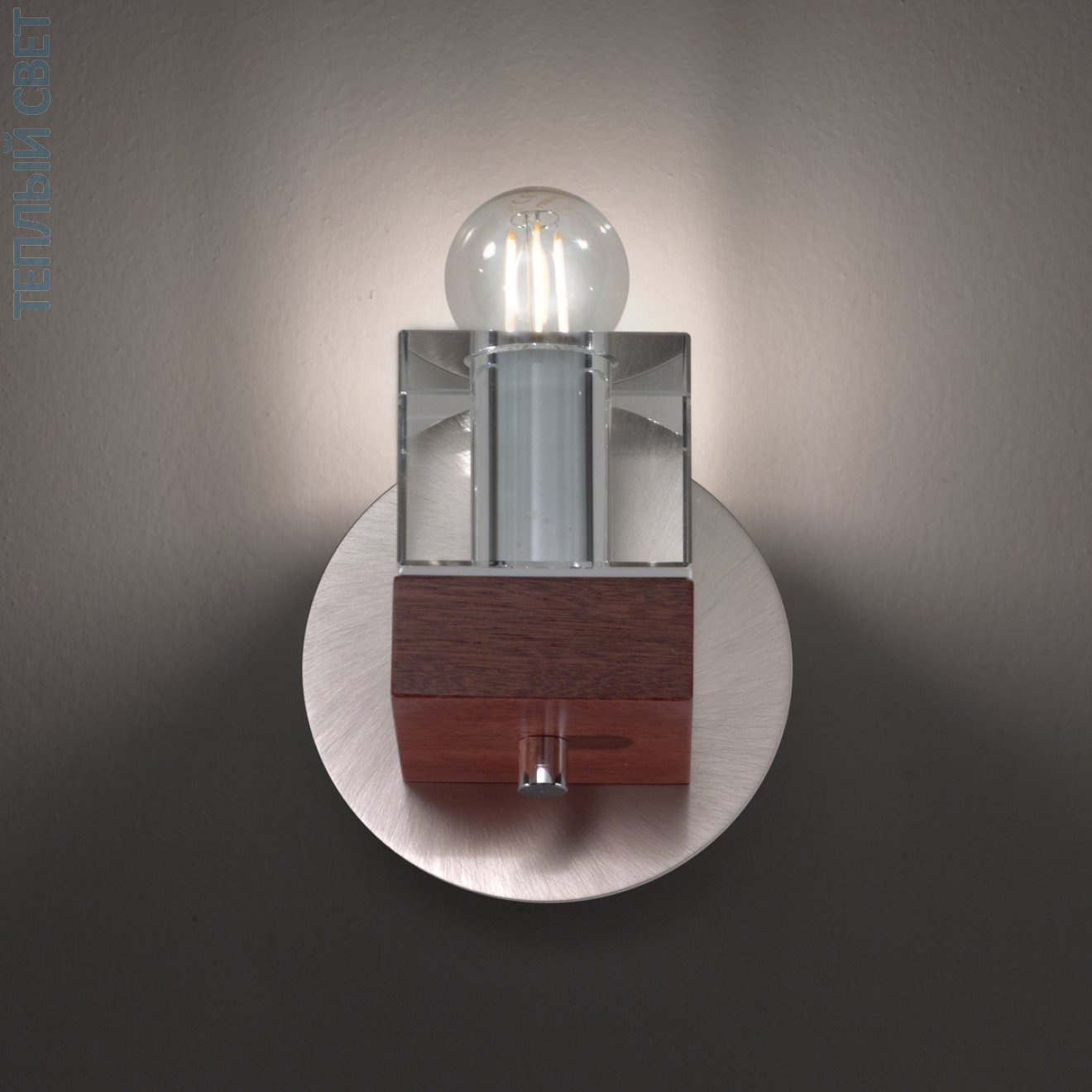 настенный светильник с деревянным основанием и стеклянным плафоном
