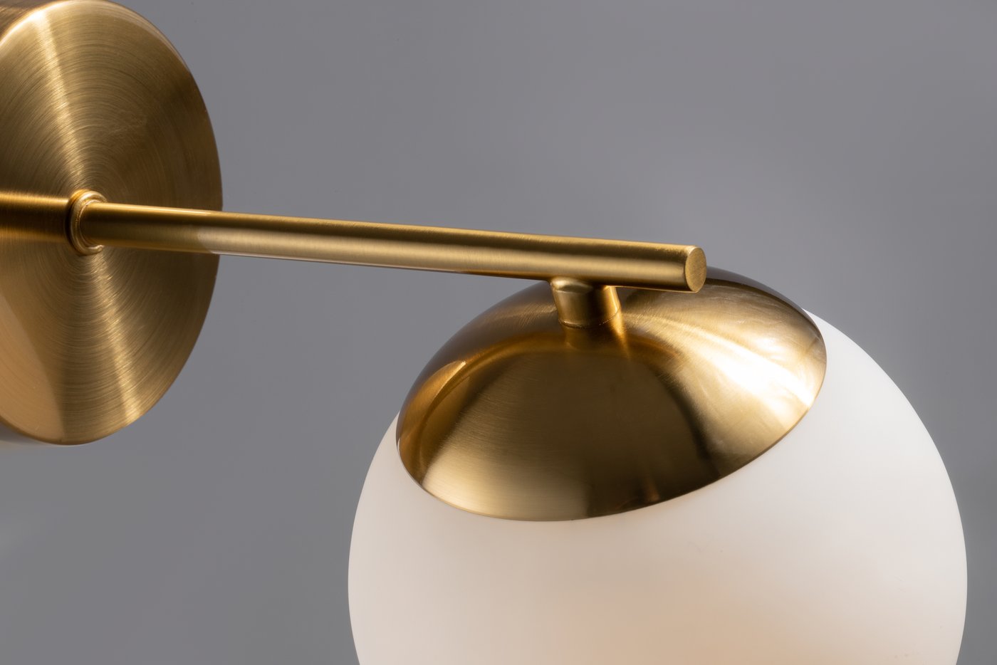 настенный светильник с шарообразным стеклянным плафоном и корпусом из латуни