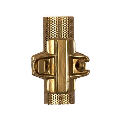 Metal joint like “scaffolding pipe” + golden lacquered pinholed tubular