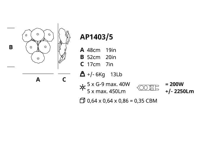 Nenufar Настенный светильник из бронзы ручной работы Serip AP1403/5