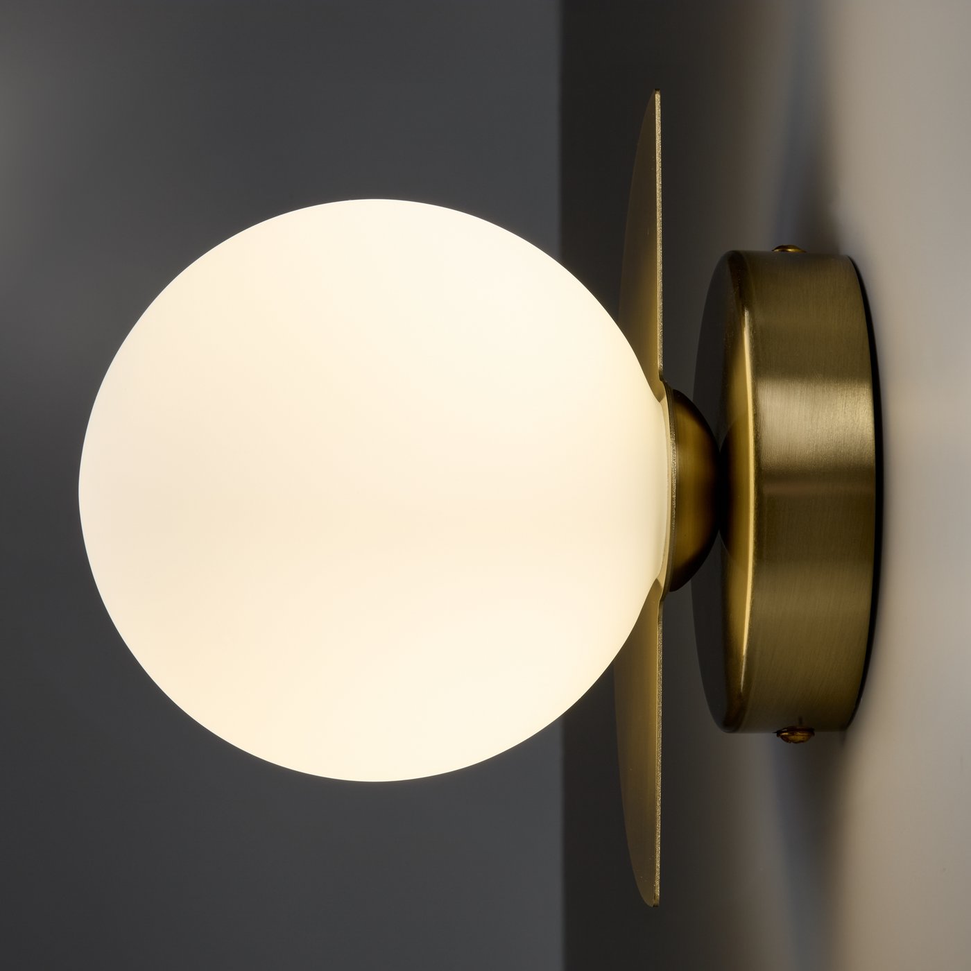 Настенное бра построено на контрасте матового стеклянного шара и латунного экрана, который частично прикрывает источник и направляет свет. В коллекции Freya Sepia плафон работает как рассеиватель: лампа с цоколем G9 находится внутри стекла, поэтому свет получается мягким и без слепящих точек, а латунная пластина добавляет отражённый тёплый отблеск на стене. В реальном сценарии это удобно у кровати или рядом с креслом: когда человек поворачивает голову, свет остаётся комфортным и не попадает прямо в глаза благодаря боковому экрану. Геометрия с выносом плафона вперёд даёт заметное пятно на стене и помогает собрать фоновый свет в зоне отдыха. Максимальная мощность 25 Вт позволяет подобрать лампу от спокойной декоративной до более яркой, если нужно подсветить небольшой участок комнаты. Крепление на планку обеспечивает аккуратную посадку к поверхности, а степень защиты IP20 рассчитана на сухие жилые помещения.