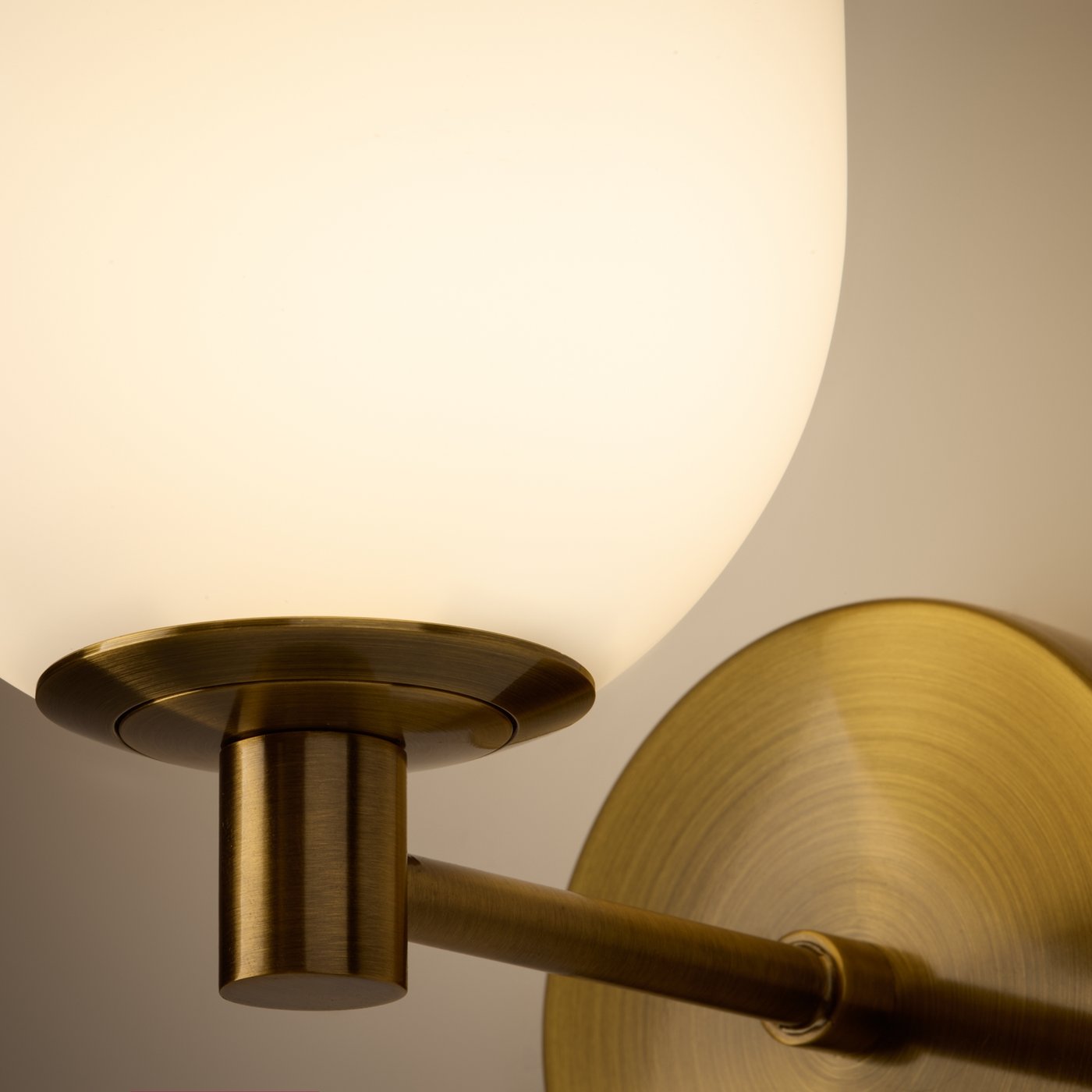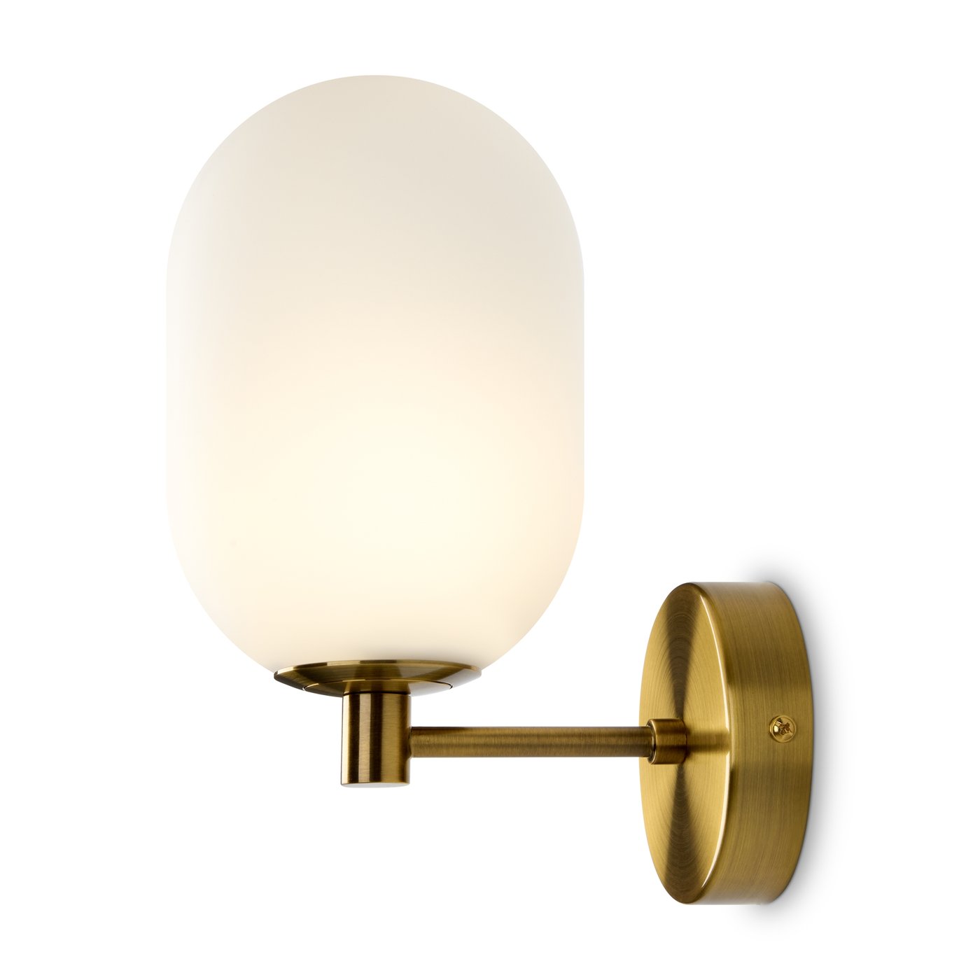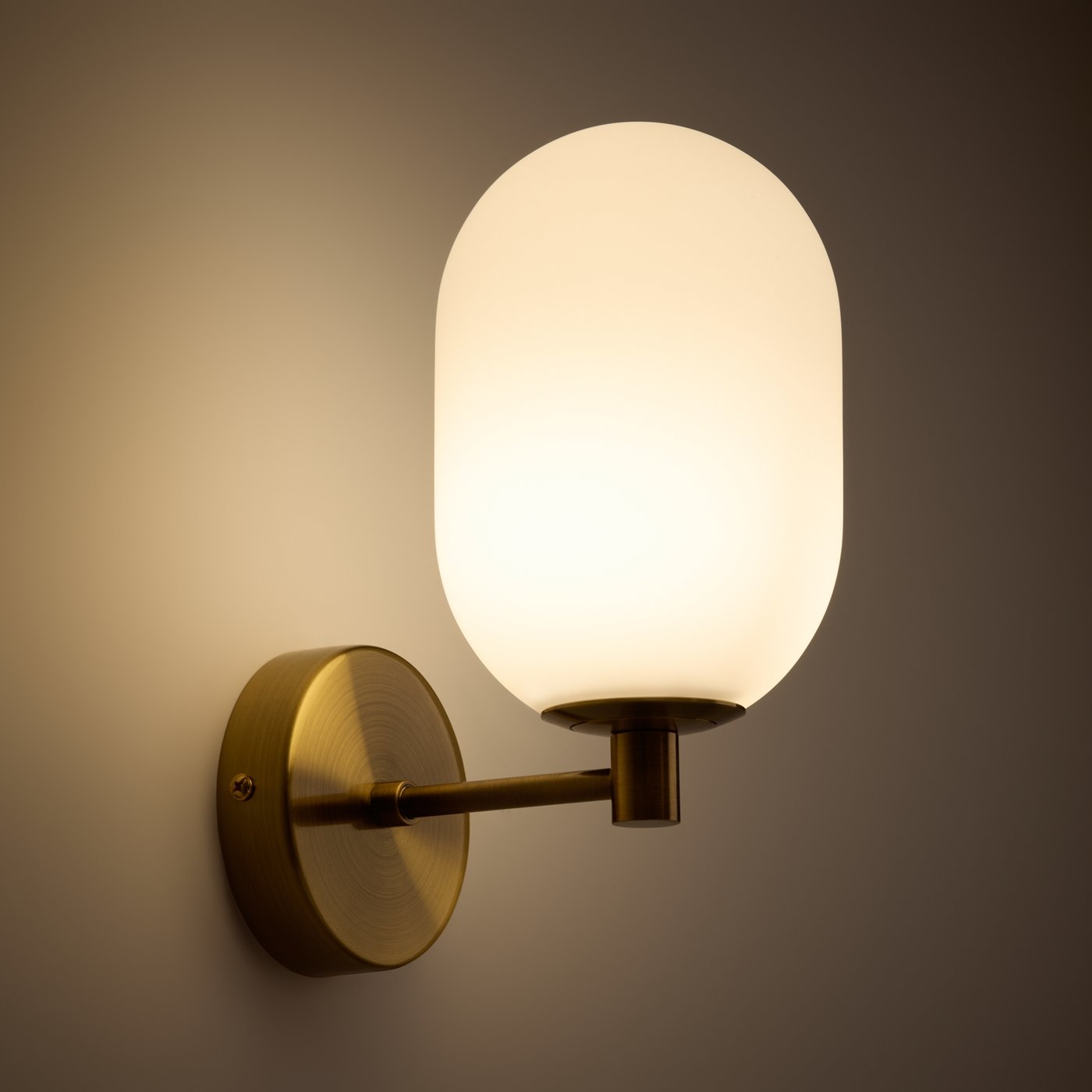 настенный светильник с овальным матовым плафоном и круглым латунным основанием