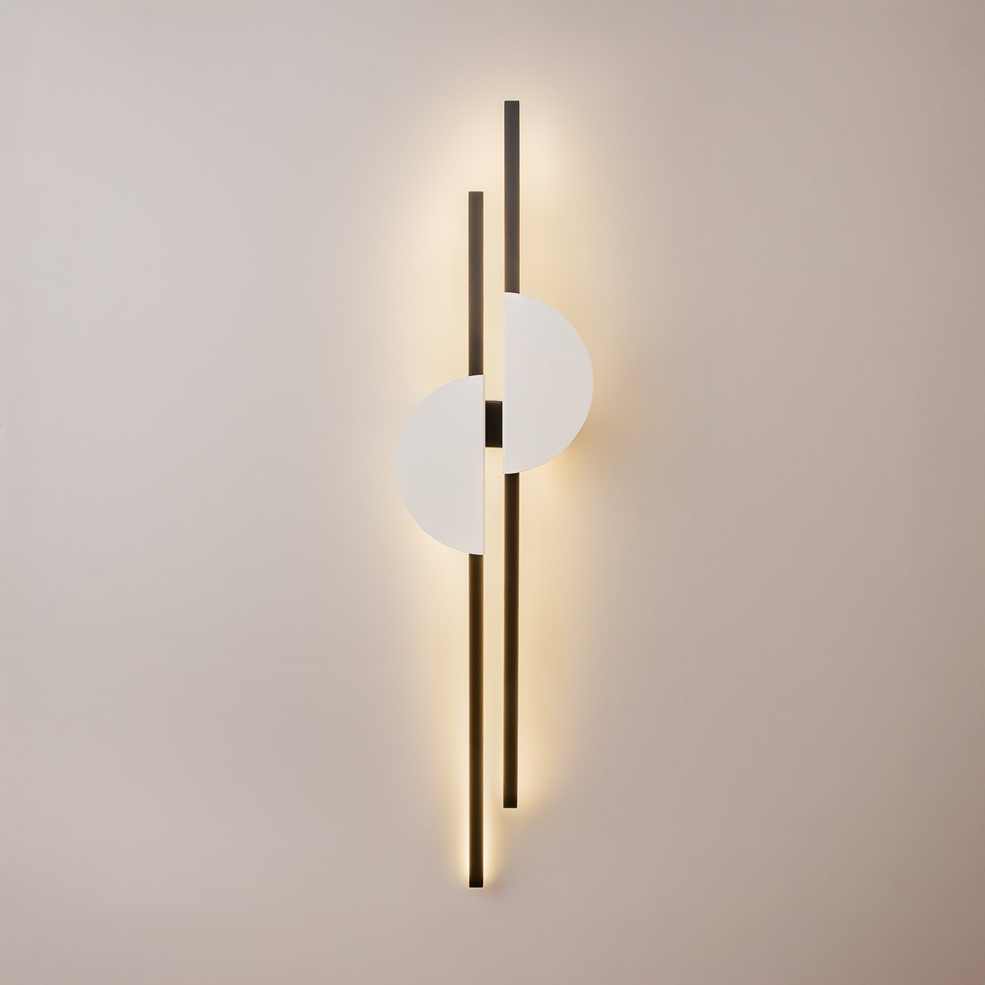 Этот настенный светильник построен на асимметричном сочетании тонких вертикальных линий и округлого светового элемента, поэтому воспринимается как графический акцент, а не как обычный источник света. Его характер — интерьерный объект, который работает с плоскостью стены и задаёт вертикальный ритм, оставаясь визуально лёгким. В интерьере его размещают в зоне дивана, у изголовья кровати или в проходе, где свет включают не для общего освещения, а чтобы подчеркнуть высоту стены и задать спокойный фон. В момент включения свет мягко рассеивается через акриловый элемент и не даёт жёсткой тени, создавая ощущение глубины вокруг конструкции. Поток около 800 лм достаточен для уверенного локального света без избыточной яркости. Возможность выбора цветовой температуры на этапе монтажа позволяет заранее настроить сценарий под конкретное пространство и оставить светильник работать в одном, продуманном режиме.