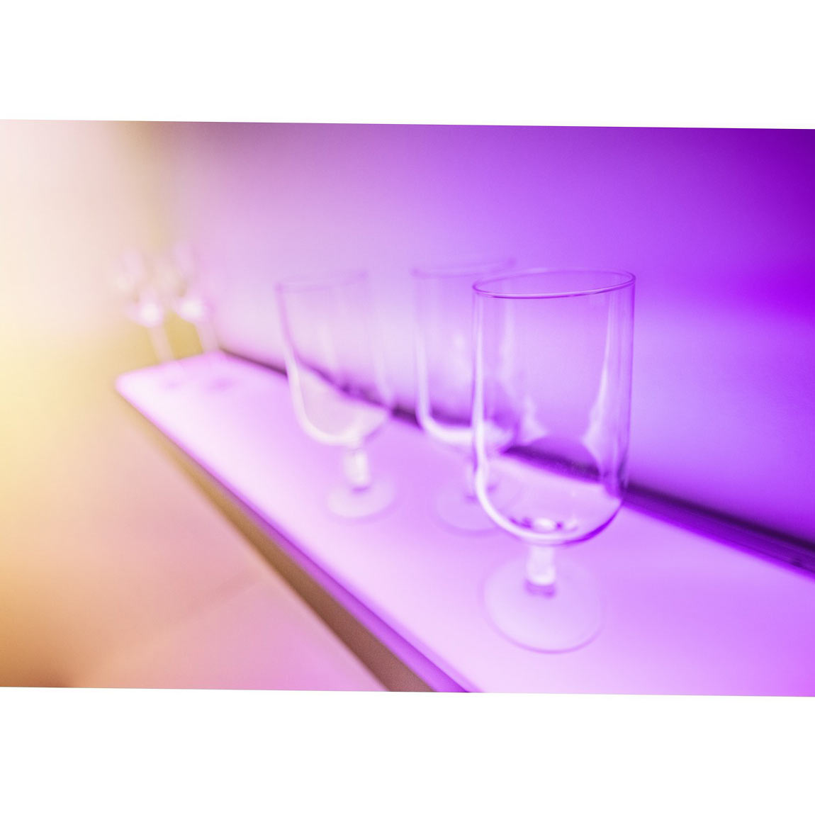 The NEW FLAT wall-mounted light is an intelligent light solution for homes, hotels, restaurants, cafés, and shops. Thanks to the ZigBee ® 3.0 standard, it is compatible with many smart home systems as well as the SLV VALETO® system.; It can therefore easily be controlled via remote control, app, or voice command. Thanks to its choice of colours, it can produce lighting to suit the mood. The blend of direct and indirect lighting ensures that it is perceived as exceptionally pleasant. It also features a winning design: the light features a load capacity of up to 3kg, and can therefore be used as a shelf. With its flat shape, this aluminium light in the NEW FLAT series cuts a slim figure on any wall.;