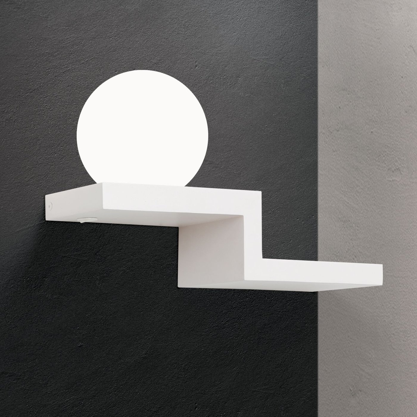 настенный светильник с шарообразным опаловым плафоном на геометрической белой базе