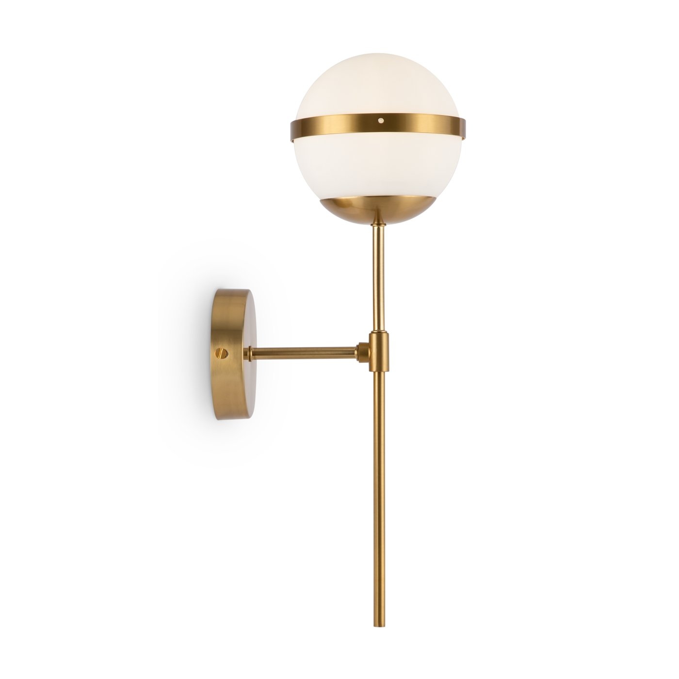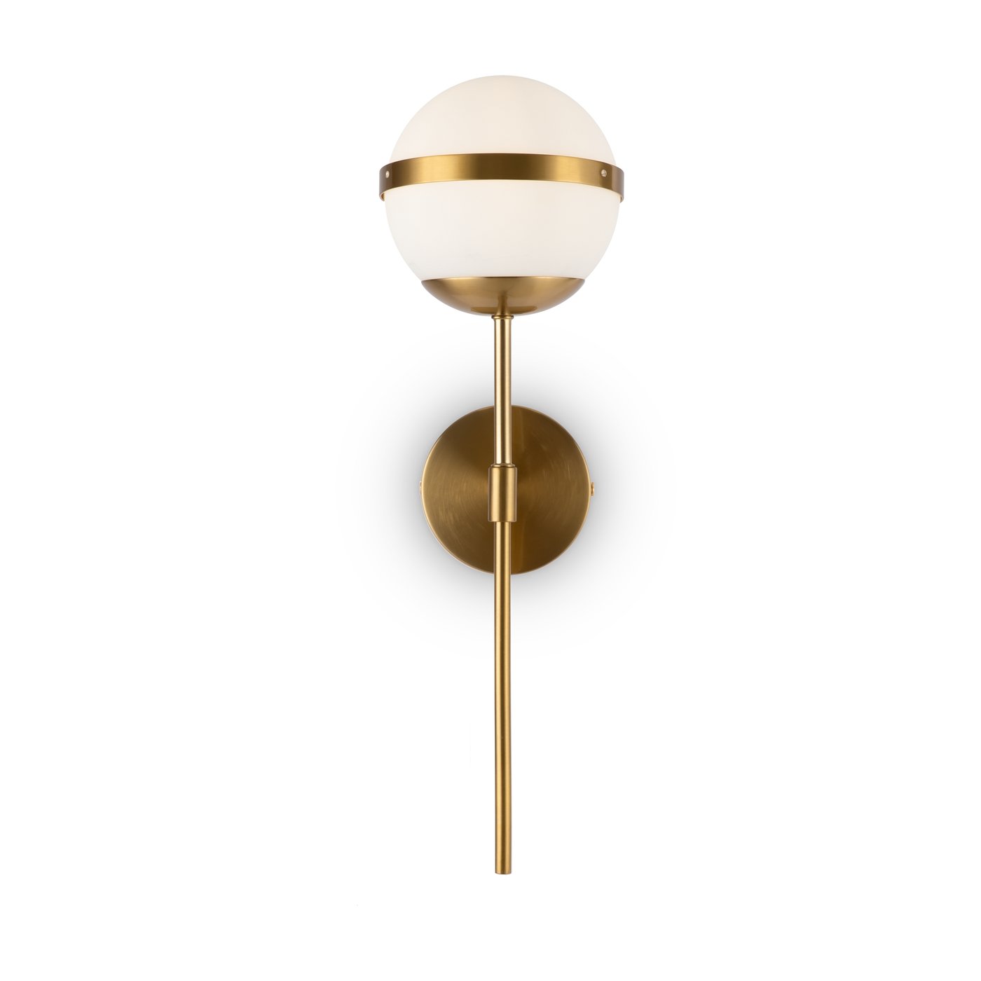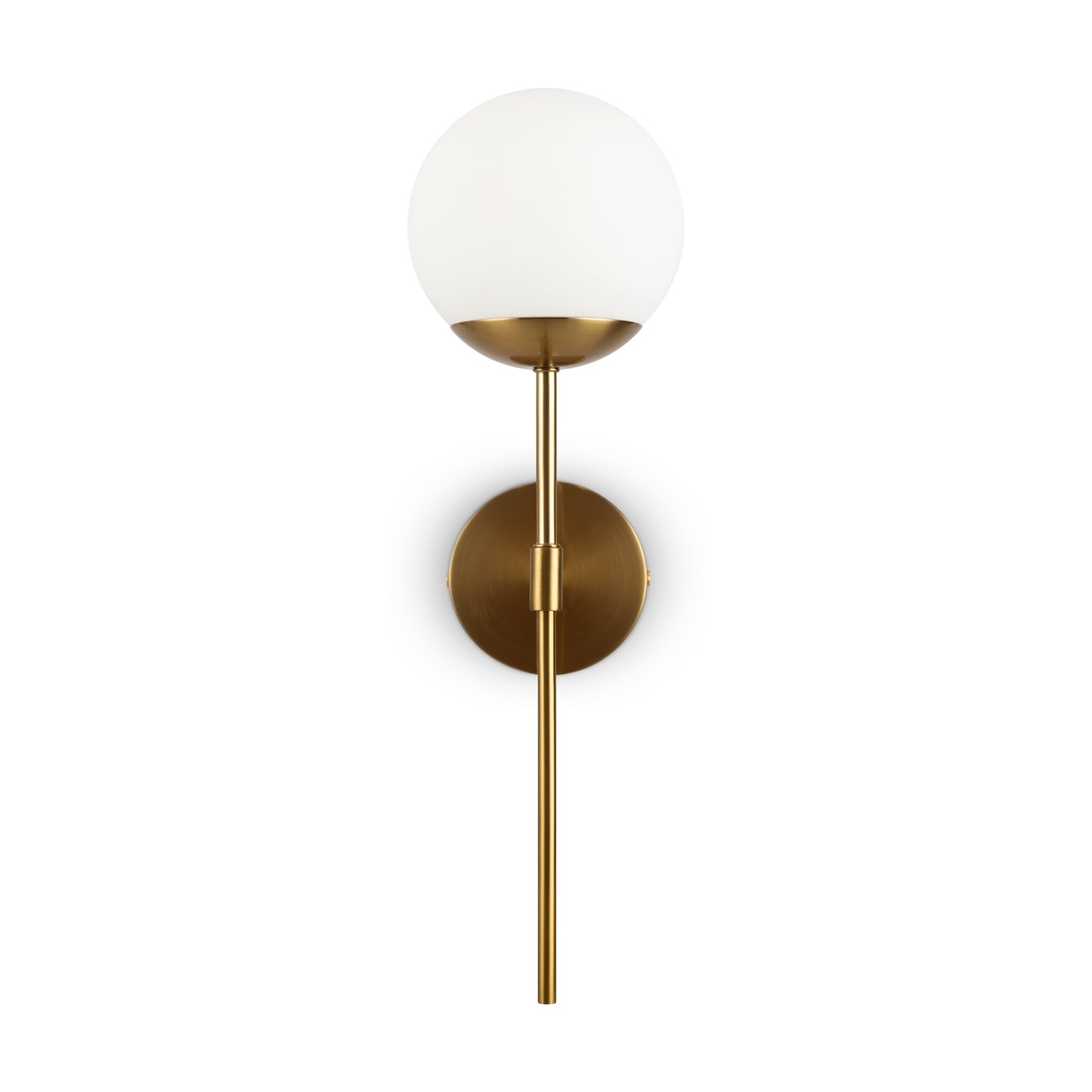 настенный светильник с шарообразным плафоном и вертикальной латунной штангой
