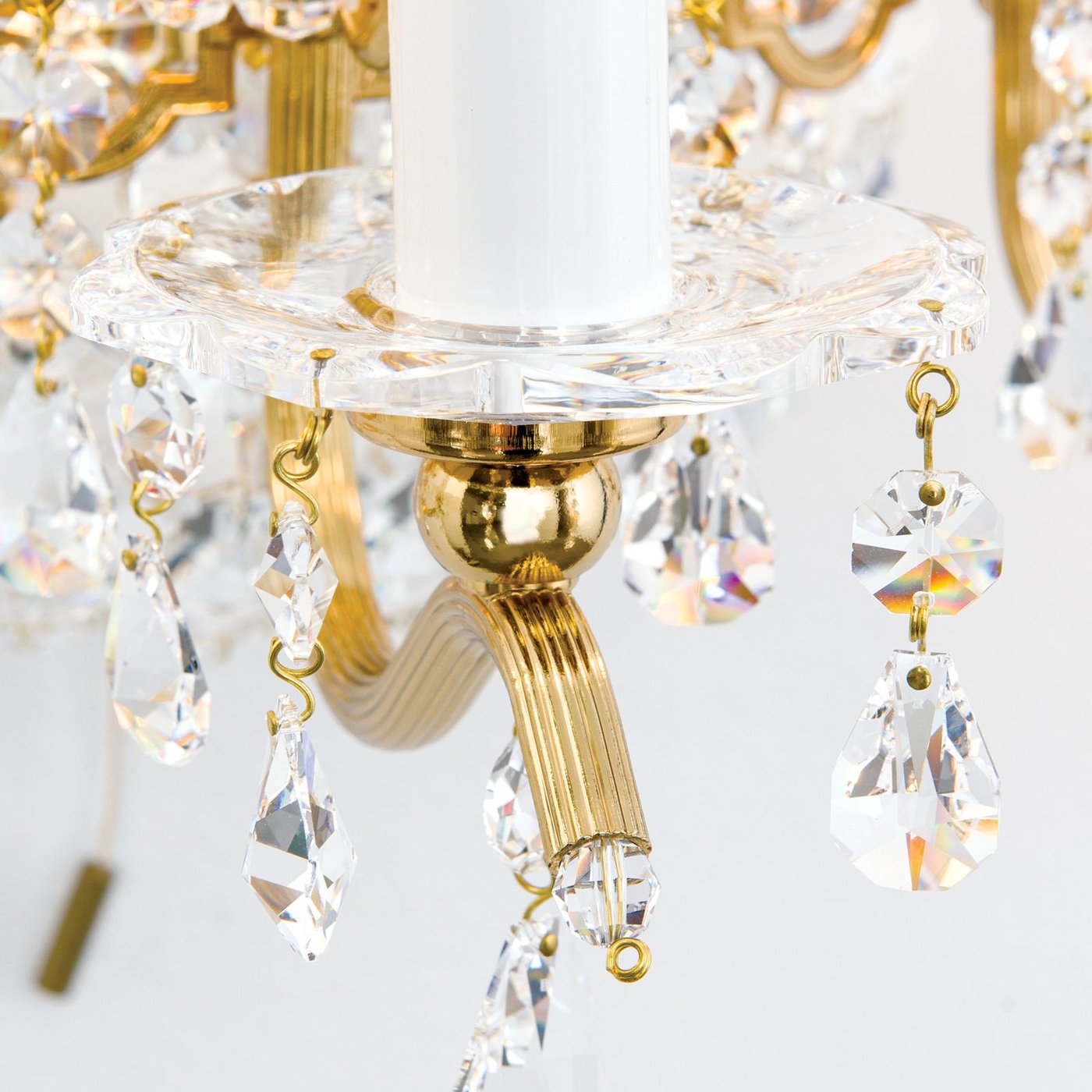 Настенный светильник, сочетающийся с великолепной люстрой серии NAGOYA, станет отличным выбором для создания эффектного светового решения. Однако сам по себе он притягивает взгляды и идеально подходит для любого классического интерьера. Основу элегантного светильника составляет рама изящной формы из цельной латуни, украшенная 24-каратным золотом. Эксклюзивный SCHÖLER CRYSTAL® украшает плечи NAGOYA в виде подвесок впечатляющей формы перепелов и овалов, закругленных в гнездах под свечами. Для создания благородного образа три цоколя E14 могут быть оснащены светодиодными лампами-свечками, которые мягко преломляют световые лучи на хрустале люстры, создавая волшебную игру света. Светильник, произведенный в Австрии, отличается высочайшим качеством. Благодаря регулировке яркости, NAGOYA также обеспечивает мягкое базовое освещение стен, создавая романтическую атмосферу.