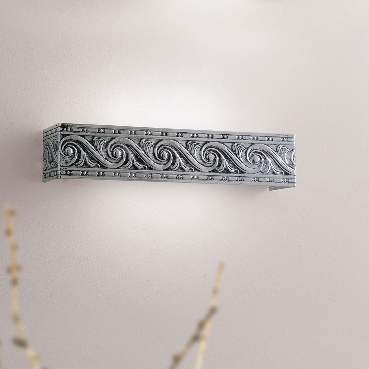 настенный светильник с вытянутым прямоугольным корпусом и резным металлическим декором