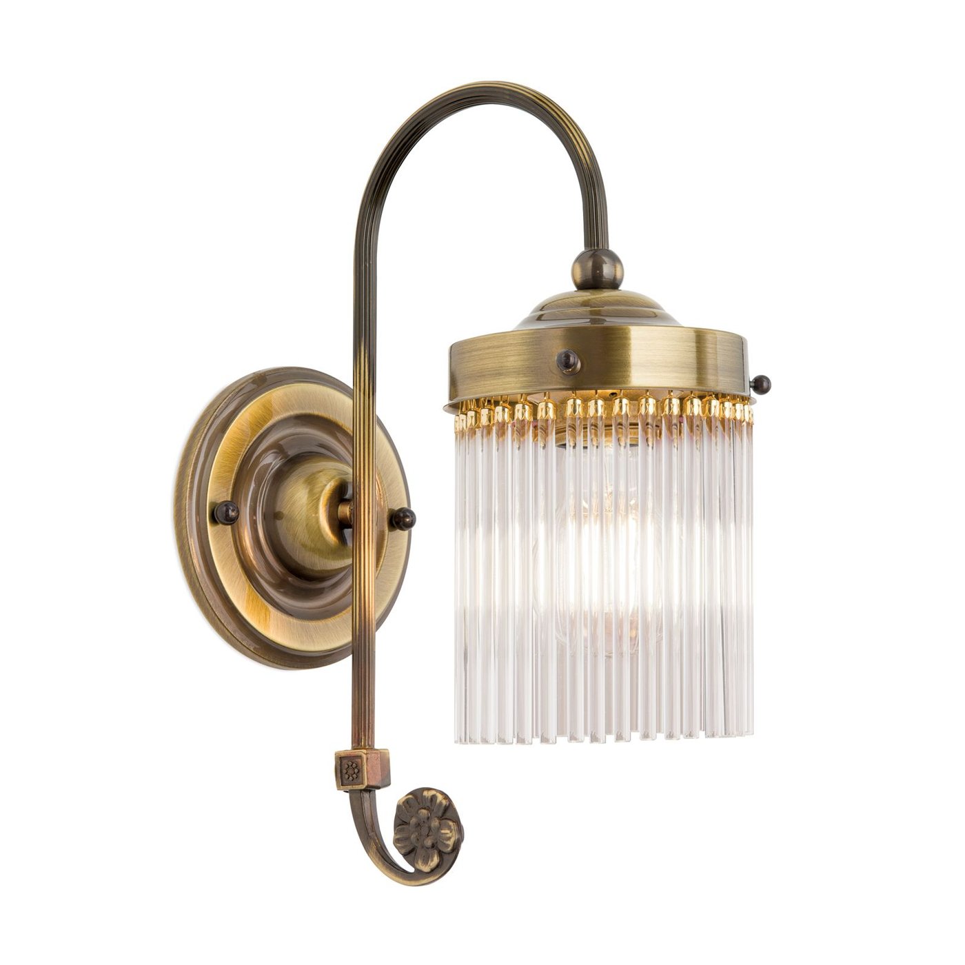одноламповое настенное бра с цилиндрическим стеклянным плафоном и патинированным корпусом