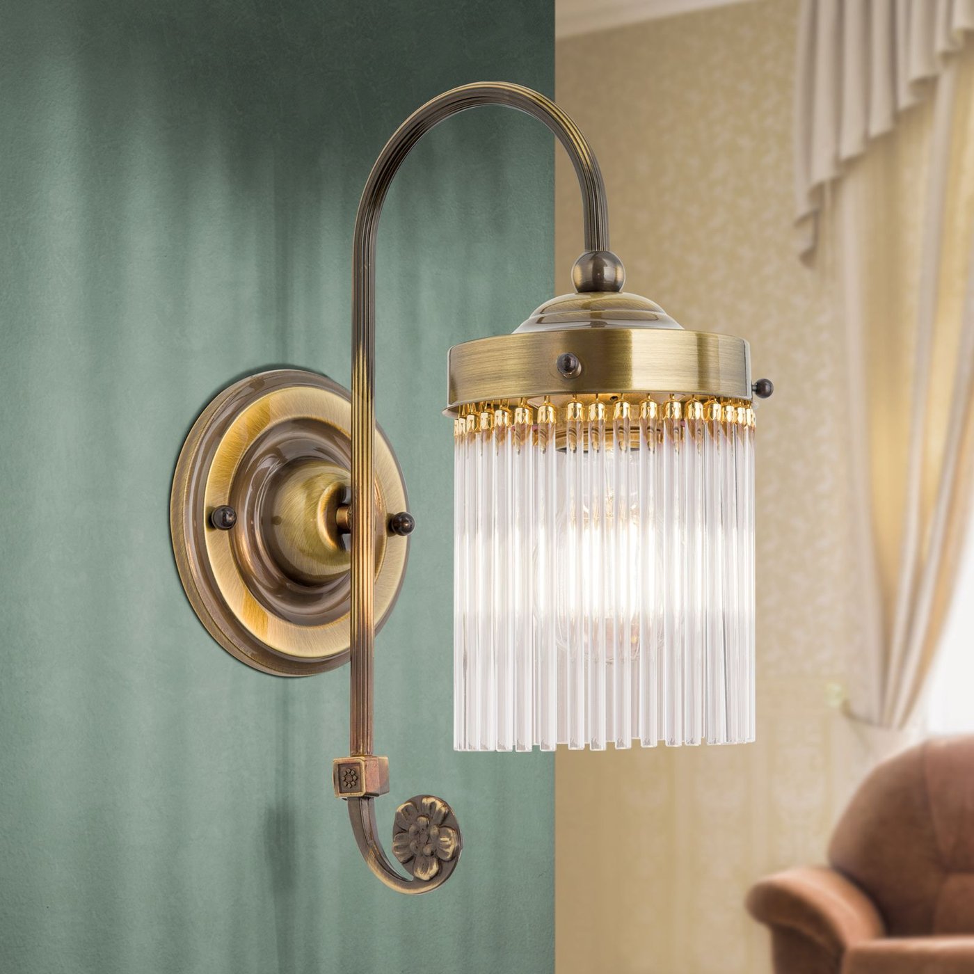 🆔 Одноламповое настенное бра с цилиндрическим стеклянным плафоном и патинированным корпусом античная латунь Stabchenserie by Orion