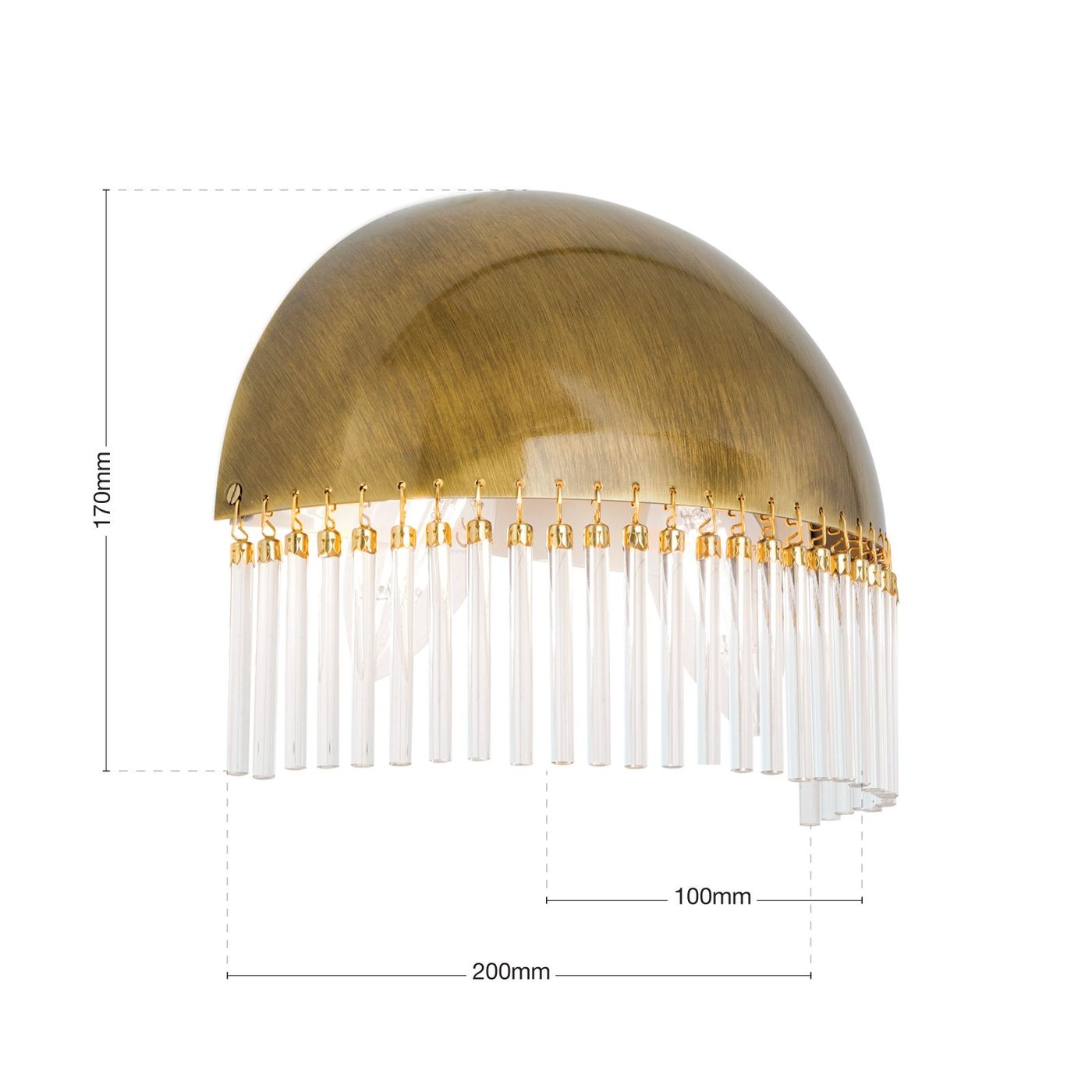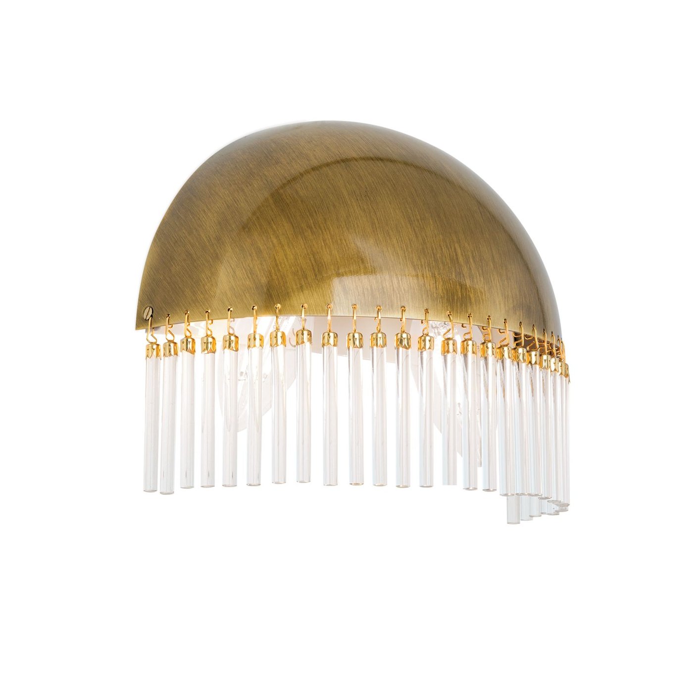 одноламповое настенное бра с полукруглым металлическим корпусом и нижним рядом стеклянных подвесок