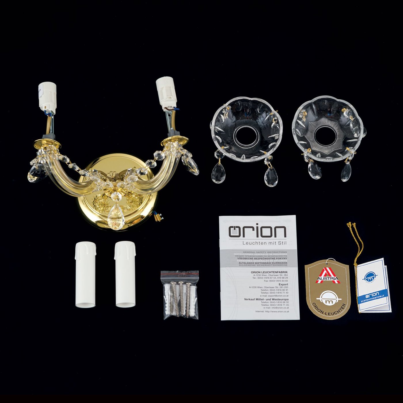WA 2-521/2 gold Marie Claire Orion двухламповое бра с золотистой арматурой и подвесками