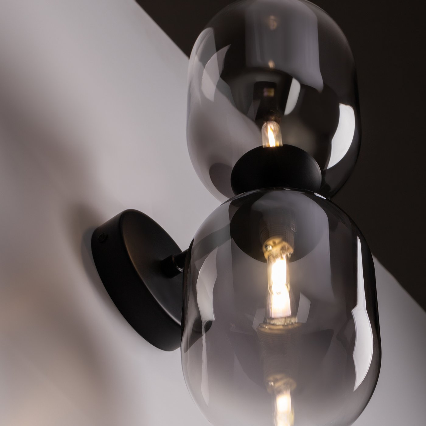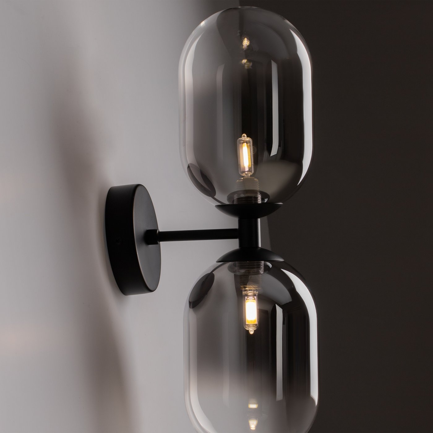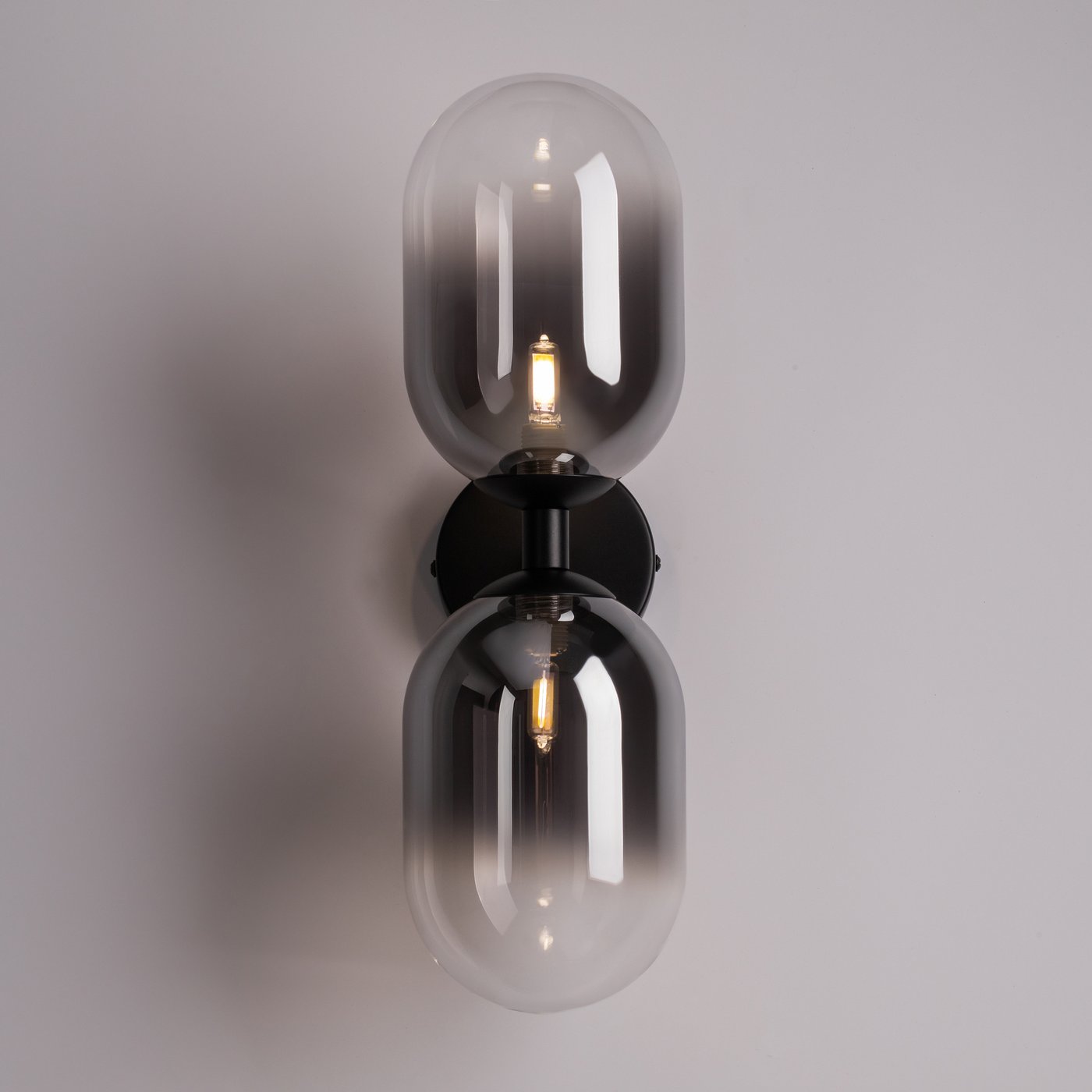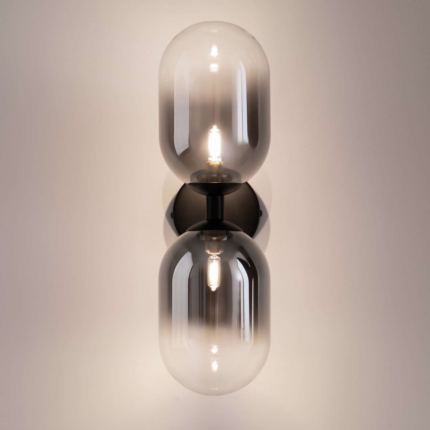 двухламповый настенный светильник с плафонами из затемненного стекла