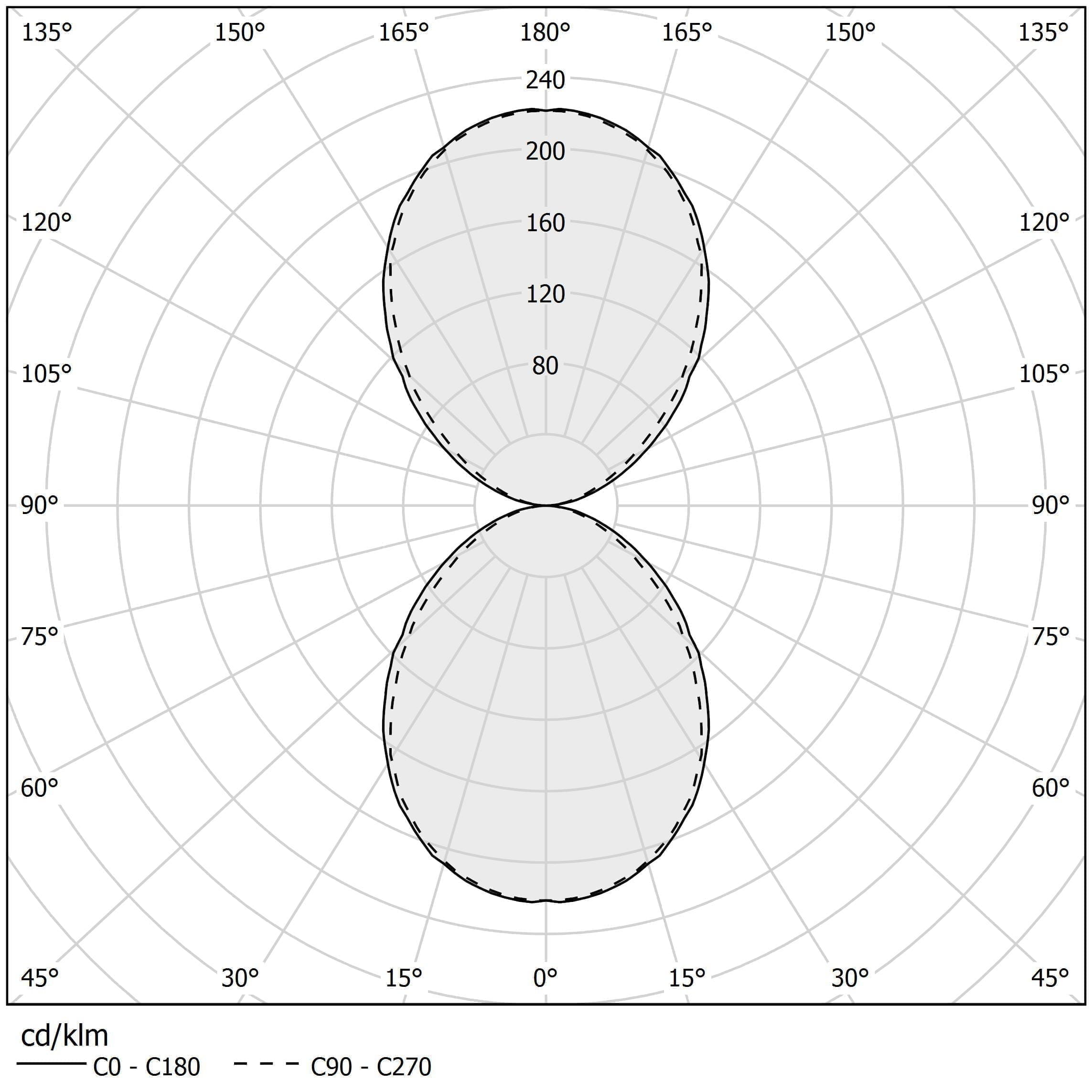 Настенный светильник предназначен для интерьерного освещения с прямым и рассеянным светом. Корпус выполнен из протравленного листового металла с покрытием из поликриловой краски, рассеиватели — из алюминия и матового стекла. Крышка может быть белой, бронзовой, латунной с поликриловым покрытием, из полированной или матовой нержавеющей стали или с покрытием из сусального золота. Размер светильника 13 × 13 × 640 мм, световой поток 2732 лм при мощности 24 Вт и цветовой температуре 3000 К, индекс цветопередачи выше 90. Лампа LED, с интегрированным драйвером, степень защиты IP20, регулировка только включением/выключением. Масса изделия 1,61 кг, свет распределяется диффузно.