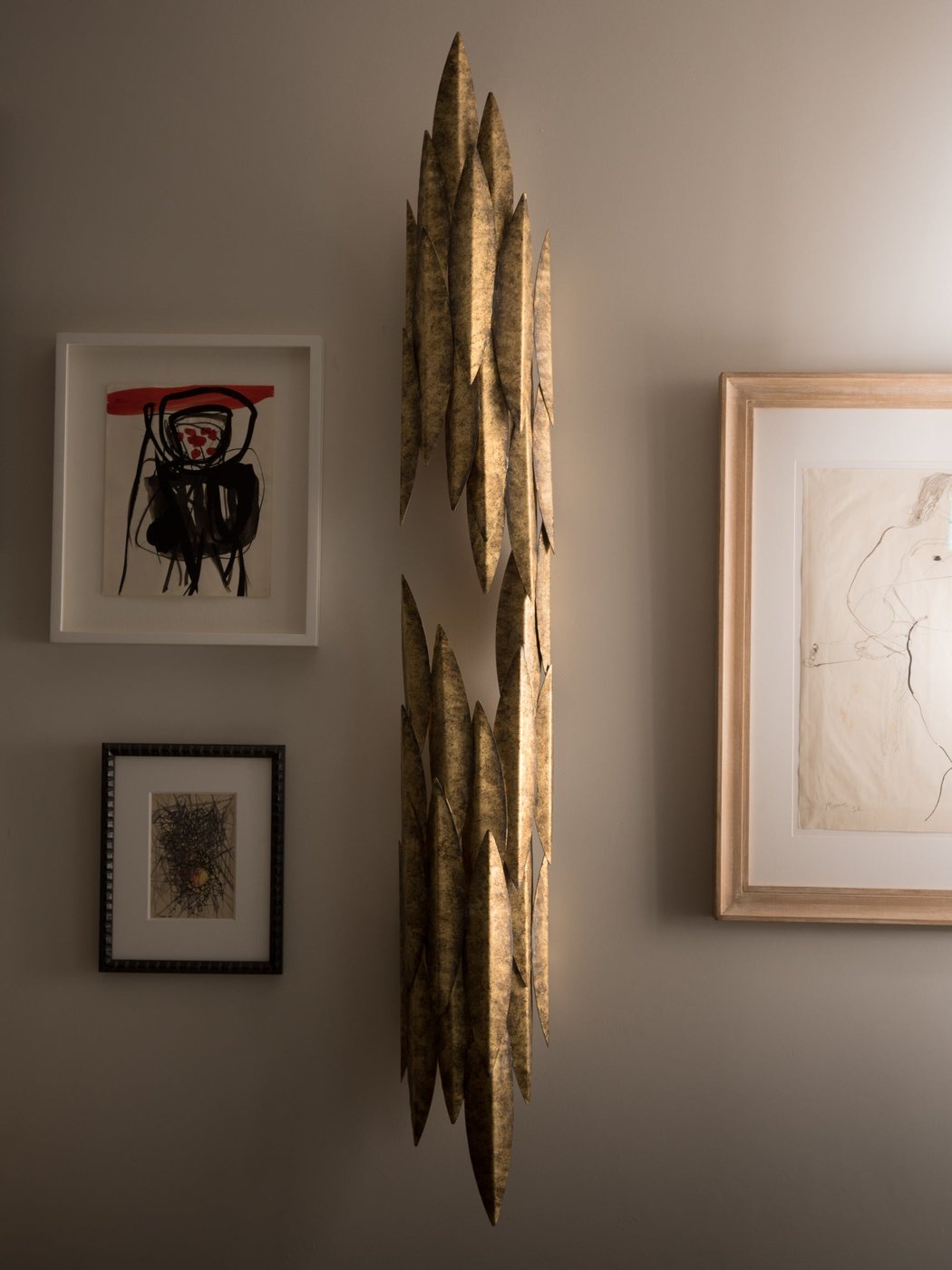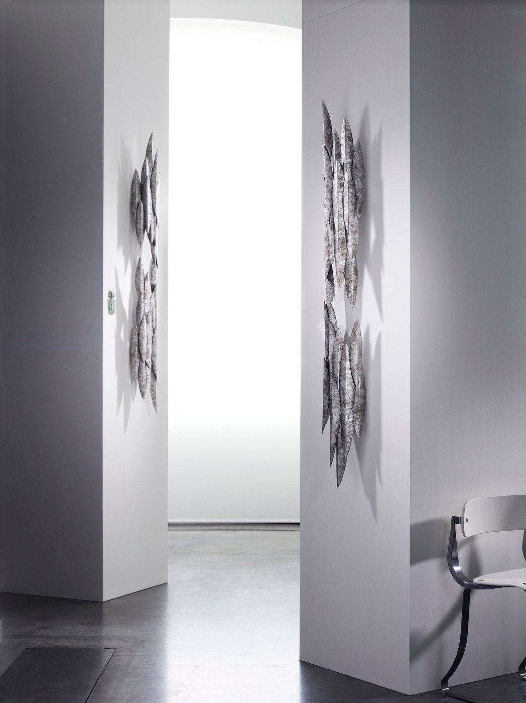 Настенный светильник Large Leaf органичен и в то же время изыскан. Каждый мотив листа вручную вырезан из кованой стали и наложен слоями, создавая эффектный силуэт при освещении.