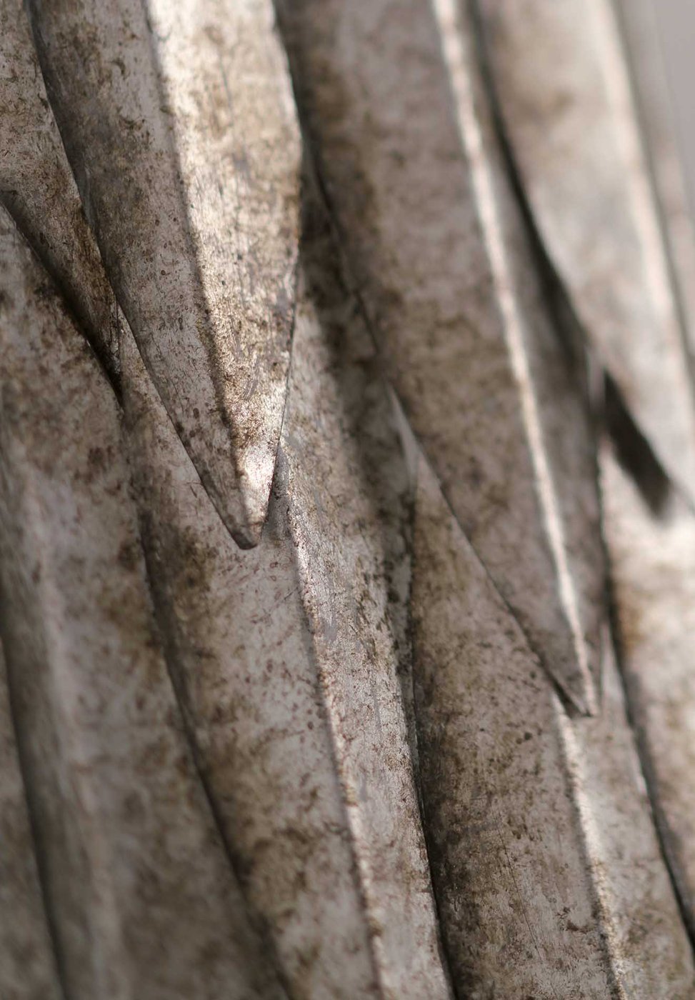 Настенный светильник Porta Romana из коллекции Leaf выполнен в виде вертикальной композиции из наложенных друг на друга металлических элементов, повторяющих форму листьев. Конструкция изготовлена из кованой стали с декоративной отделкой, при этом каждый элемент вырезан вручную и установлен слоями, создавая глубину и частичное перекрытие света. Внутри размещены четыре источника света с цоколем G9 мощностью по 3 Вт, суммарный световой поток составляет 320 лм, что делает модель скорее акцентной, чем основной. Ширина светильника 180 мм, он крепится к стене и используется как декоративный источник света с выраженной пластикой формы.