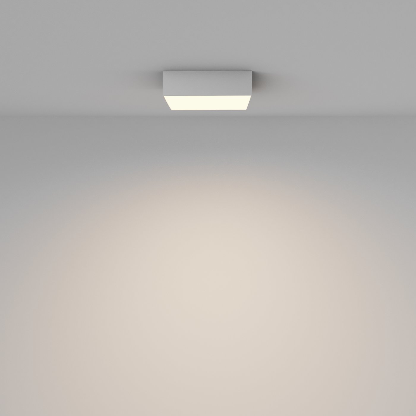 Потолочный накладной светильник выполнен в компактном квадратном корпусе с равномерно светящейся нижней плоскостью, где источник полностью скрыт за рассеивателем и не даёт прямой яркой точки. В коллекции Zon от Maytoni такая форма используется для получения спокойного, контролируемого света без декоративного акцента, когда важна функция, а не визуальная доминанта. В реальном сценарии при перемещении по комнате свет распределяется мягко и широко: при повороте головы нет ослепляющих углов, а освещённость остаётся стабильной по всей площади. Модель работает как основной свет в жилых и общественных интерьерах — коридорах, кабинетах, переговорных, где требуется равномерное заполнение пространства. Световой поток 1800 лм при мощности 24 Вт позволяет закрыть помещение одной точкой без ощущения тусклости. Угол рассеивания 120° даёт широкое покрытие, а цветовая температура 3000 K создаёт тёплый, комфортный свет для длительного пребывания. Высокий индекс цветопередачи Ra 90 обеспечивает естественное восприятие отделки и предметов, а накладной монтаж без видимых креплений делает светильник визуально аккуратным на потолке.