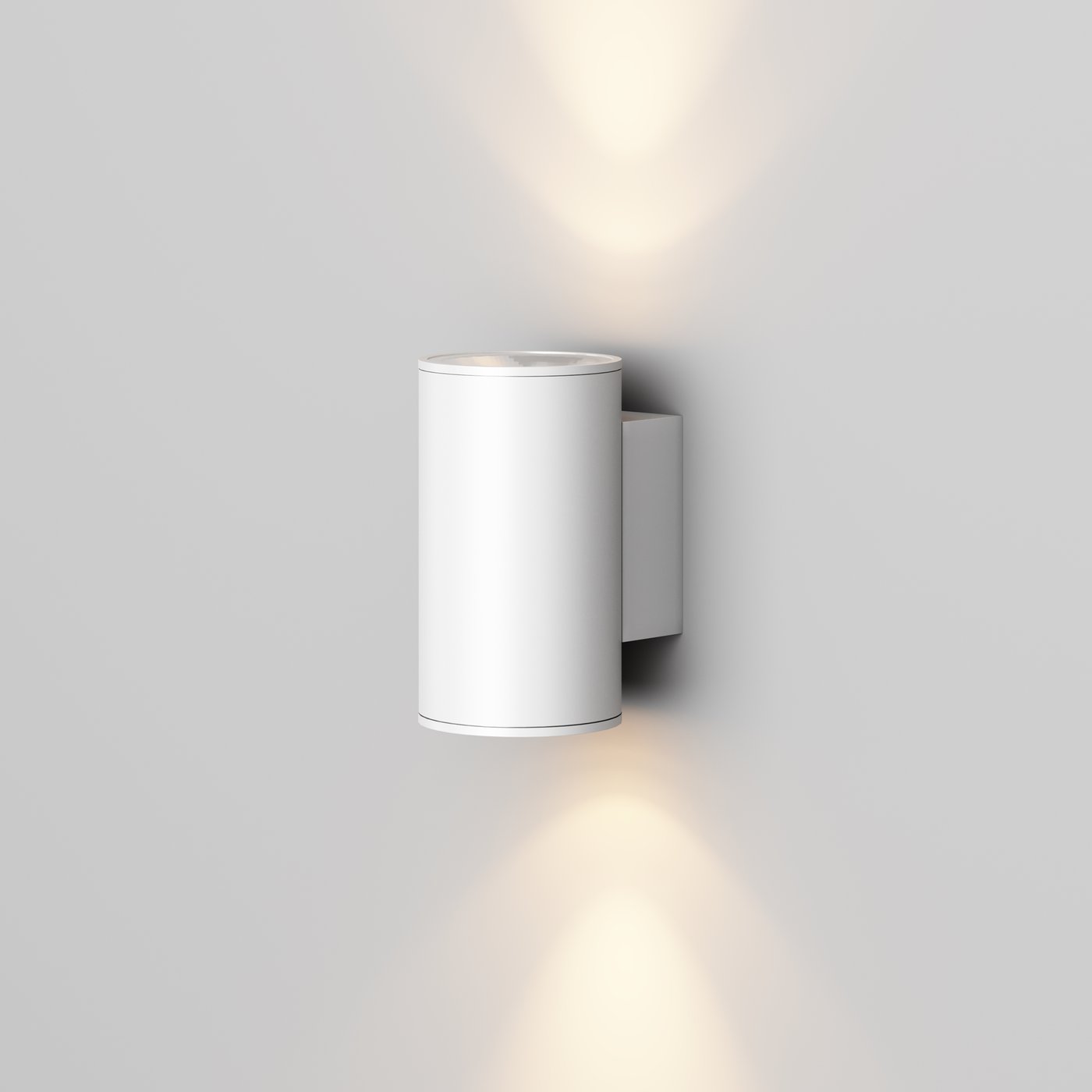 Настенный цилиндрический светильник формирует двусторонний световой поток и используется для архитектурной подсветки фасадов. В серии Maytoni Shim корпус из металла и стекла направляет свет вверх и вниз, создавая на стене симметричные конусы, которые становятся заметными уже при приближении к зданию. При движении вдоль фасада свет равномерно сопровождает маршрут, подсвечивая поверхность и помогая ориентироваться у входа или на террасе. Мощность 10 Вт и световой поток 800 лм дают достаточную яркость для локального освещения стены без избыточной засветки прилегающей территории. Широкий угол 145° раскрывает световой рисунок и делает границы луча мягкими, а температура 3000K комфортна для вечернего уличного сценария. Степень защиты IP65 позволяет использовать светильник под дождём и снегом, а класс электробезопасности I предполагает подключение с заземлением. Белый корпус визуально нейтрален днём и подчёркивает графику световых пятен в тёмное время.