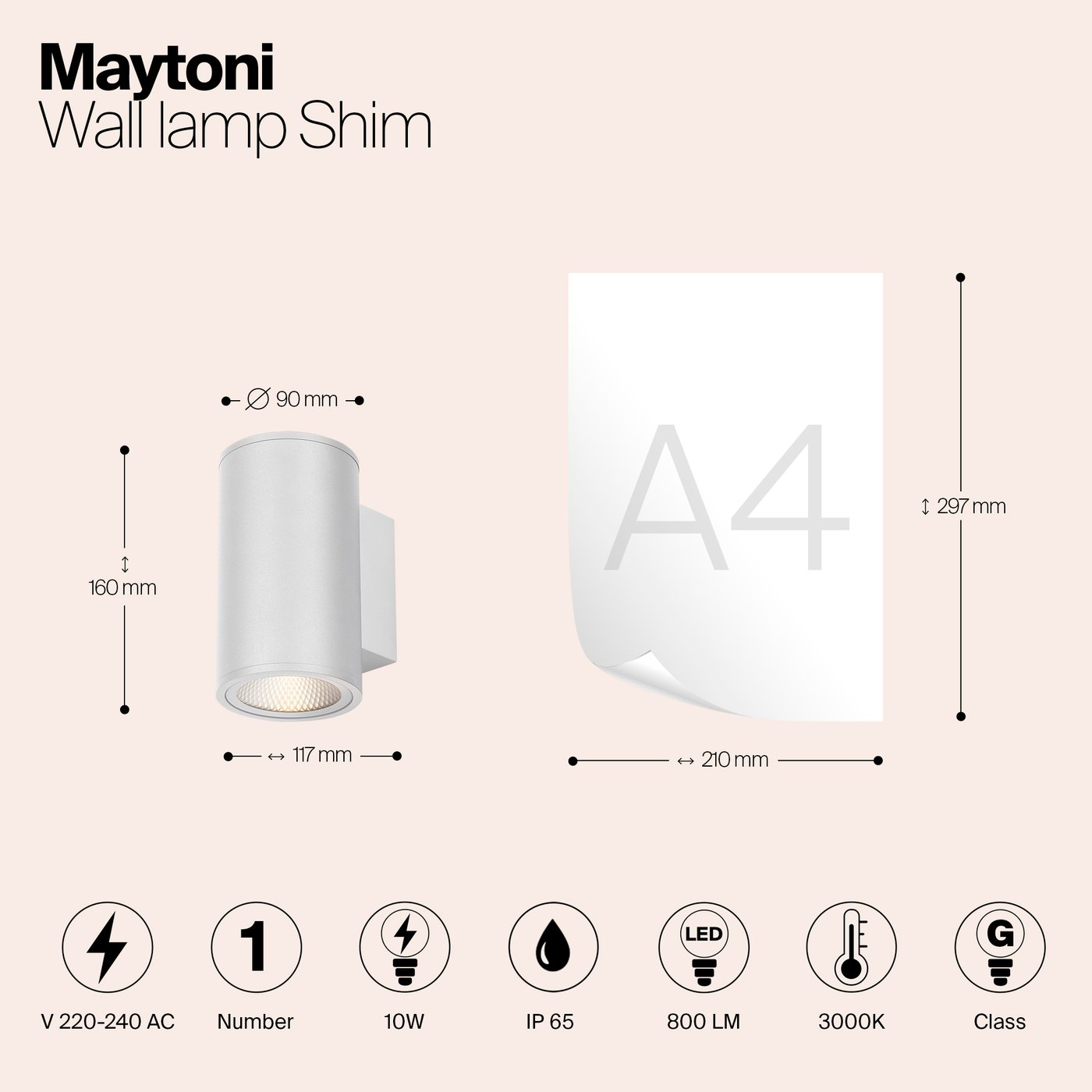 🆔 Настенный цилиндрический светильник белого цвета белый Shim by Maytoni