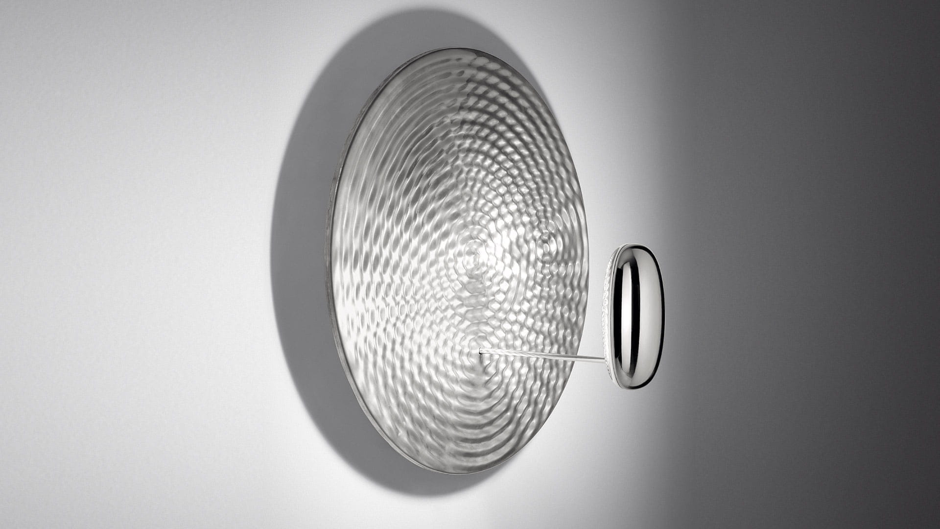 🆔 Настенно-потолочный светильник с округлым металлическим основанием и текстурированной поверхностью алюминий, хром Droplet by Artemide