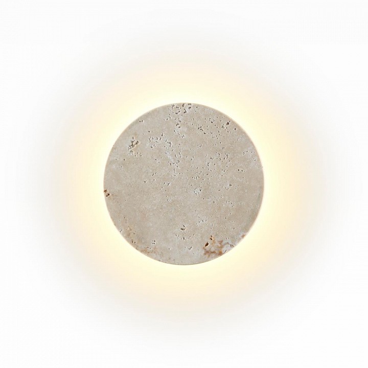 Накладной светильник диаметром 160 мм выполнен в форме плоского диска с выносом 50 мм от стены, поэтому создаёт компактный световой акцент с мягким ореолом по периметру. В коллекции Odeon Light Travertino плафон из полимера с фактурой травертина рассеивает поток в стороны, а часть света отражается на стену, формируя равномерную засветку без жёсткой границы. Модель применяют для фонового света в гостиной или коридоре: при включении свет образует тёплое кольцо вокруг корпуса и сглаживает контраст в вечернем сценарии. Световой поток 425 лм при мощности 6 Вт рассчитан на площадь до 3 м², что делает светильник подходящим для локальных зон или композиции из нескольких дисков. Температура 3000 К обеспечивает комфортное восприятие натуральных оттенков отделки, питание 220 В и защита IP20 предполагают установку в сухих помещениях.